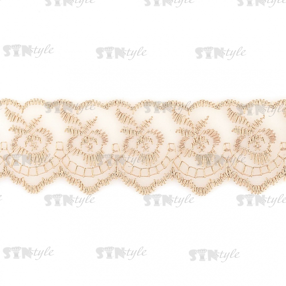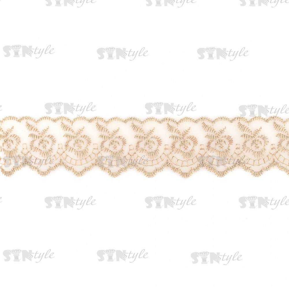 Кружево декоративное, нежная вышивка на тонкой капроновой основе, ширина 40 мм, цвет бежевый (60), намотка 10 ярдов