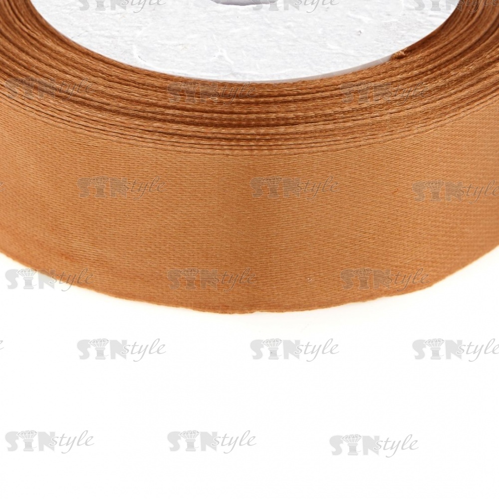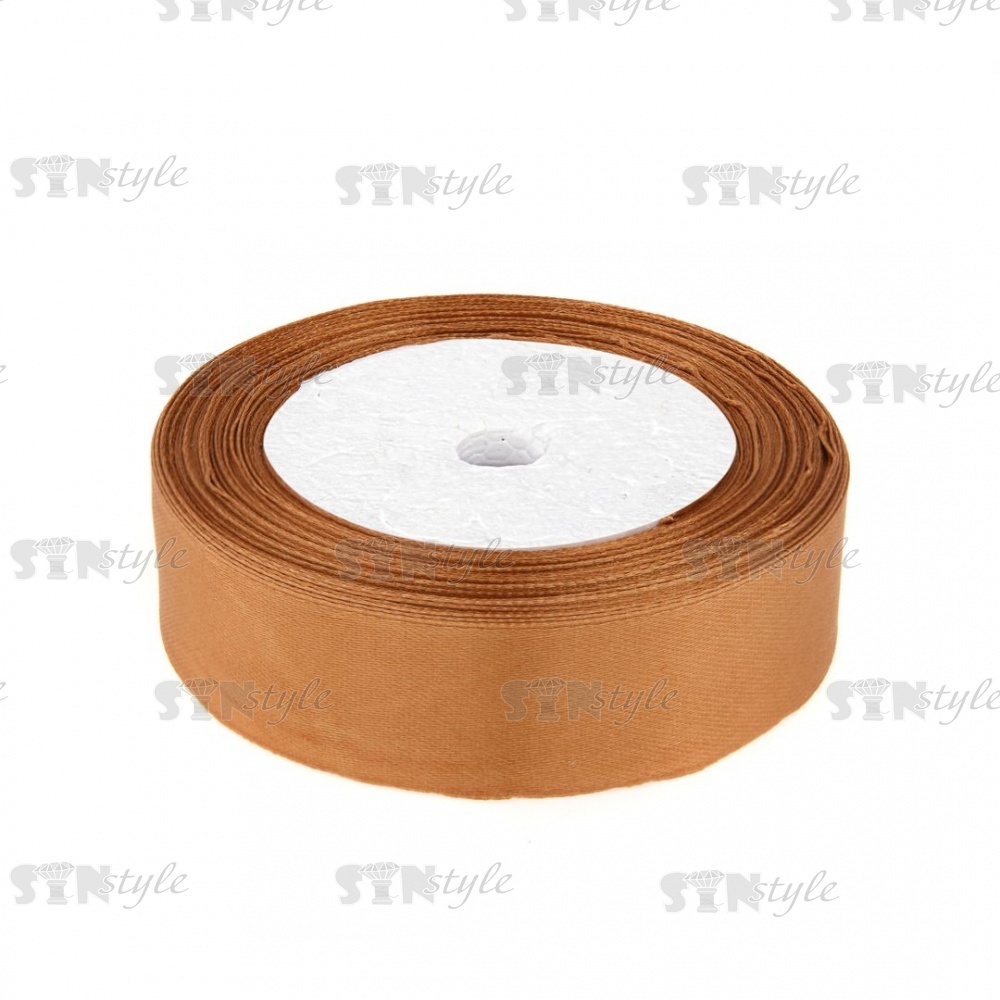 Декоративная лента атласная 25 мм, намотка 25 ярдов, цвет светло-коричневый (158)