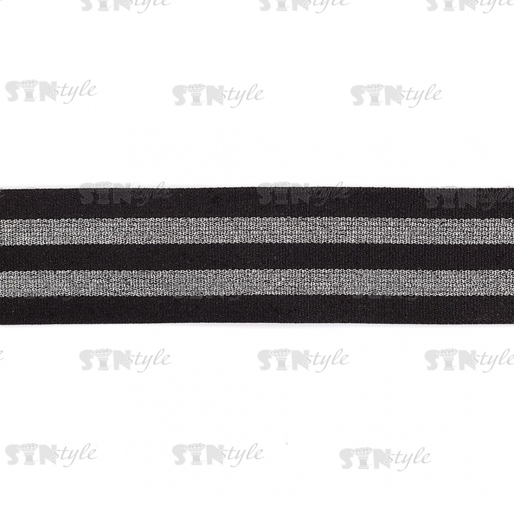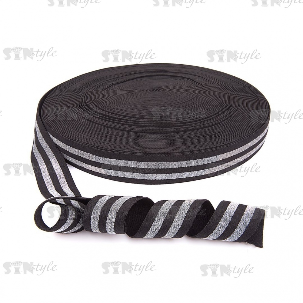 Резинка декоративная, ширина 40 мм, цвет черный+серебряный, намотка 50 метров