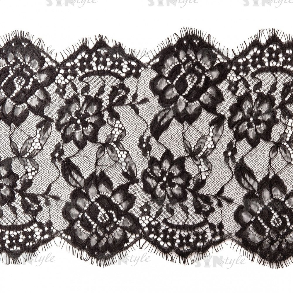 Кружево "Французское", ширина 220 мм, цвет черный, длина 3 метра