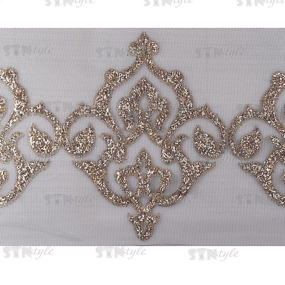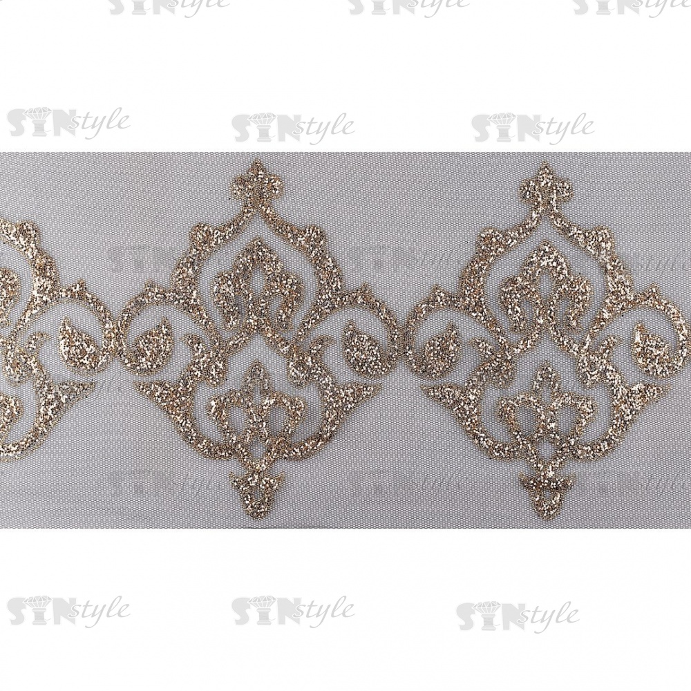 Кружево на черной сетке с золотым глиттером, ширина 205 мм, намотка 15 ярдов