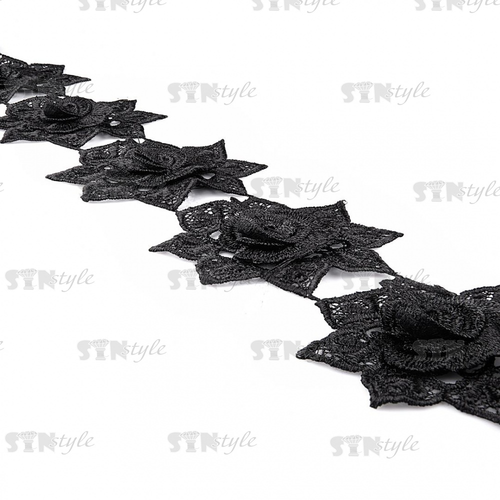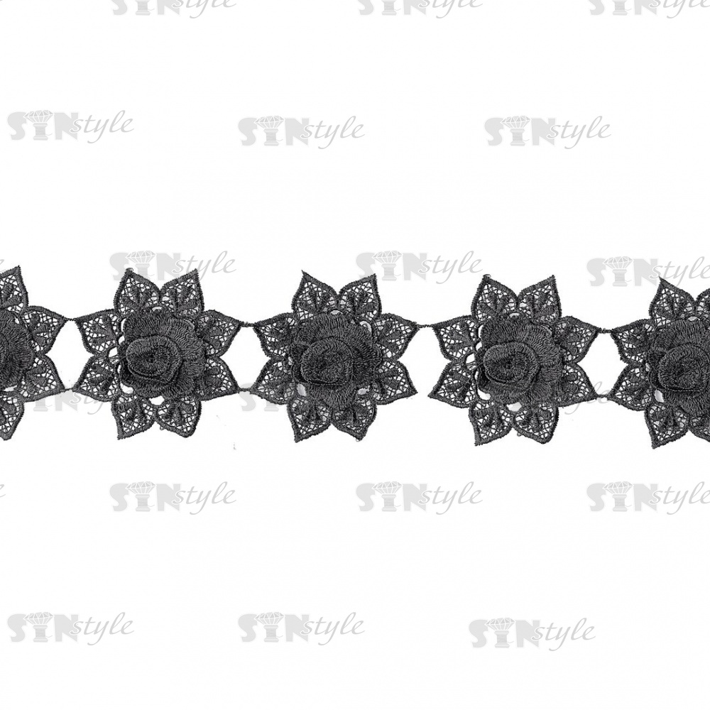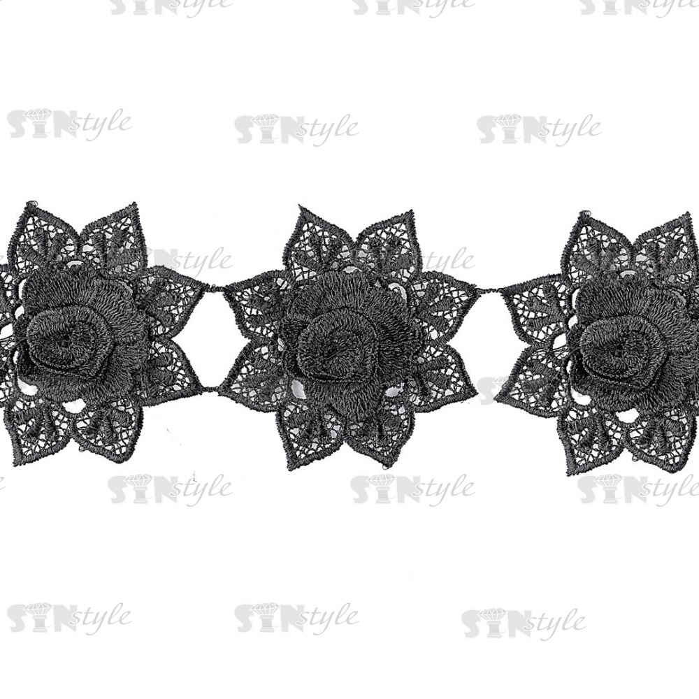 Кружево "Цветочное", гирлянда из объемных бутонов роз на нежной кружевной основе, ширина 100 мм, цвет черный, намотка 15 ярдов