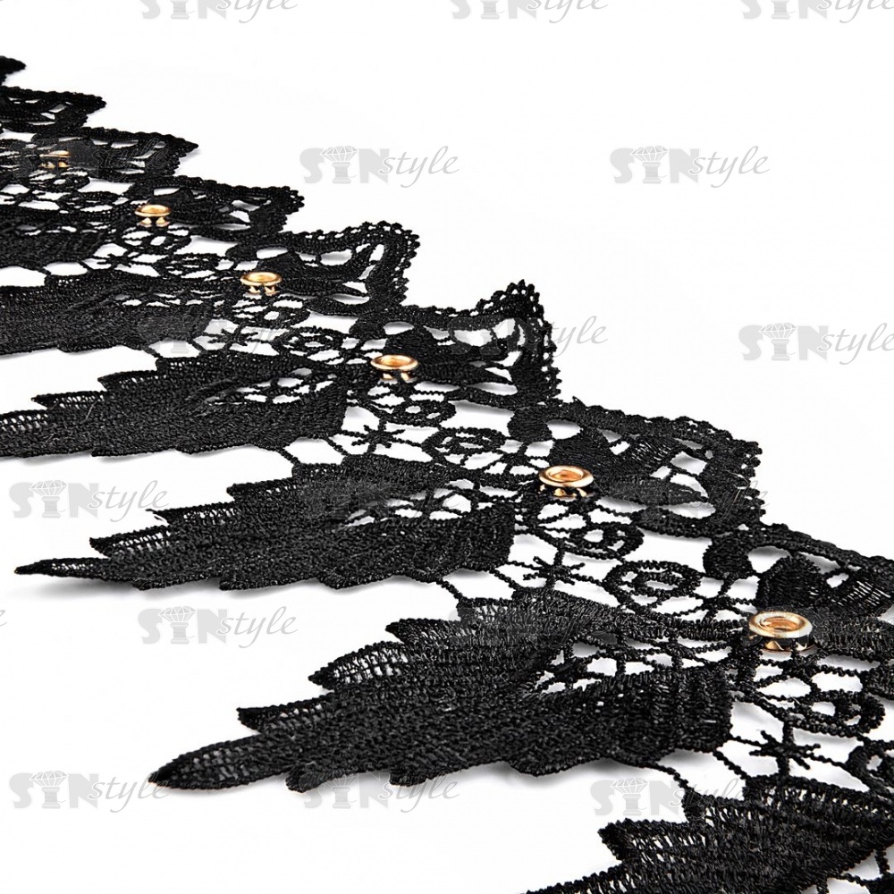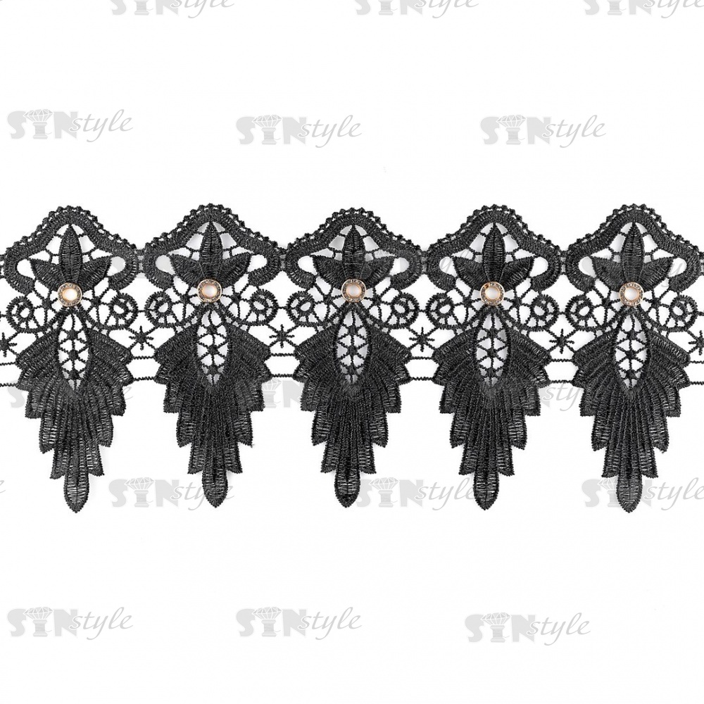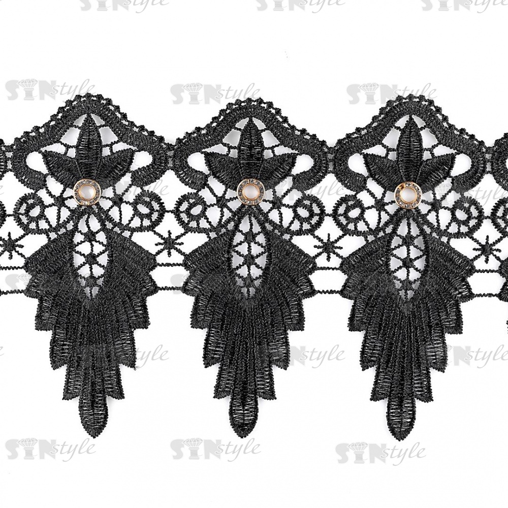 Кружево ажурное с отделкой, нежная кружевная гирлянда из полуцветочков и листьев с люверсами по всей длине издели, ширина 14 мм, намотка 15 ярдов, цвет черный