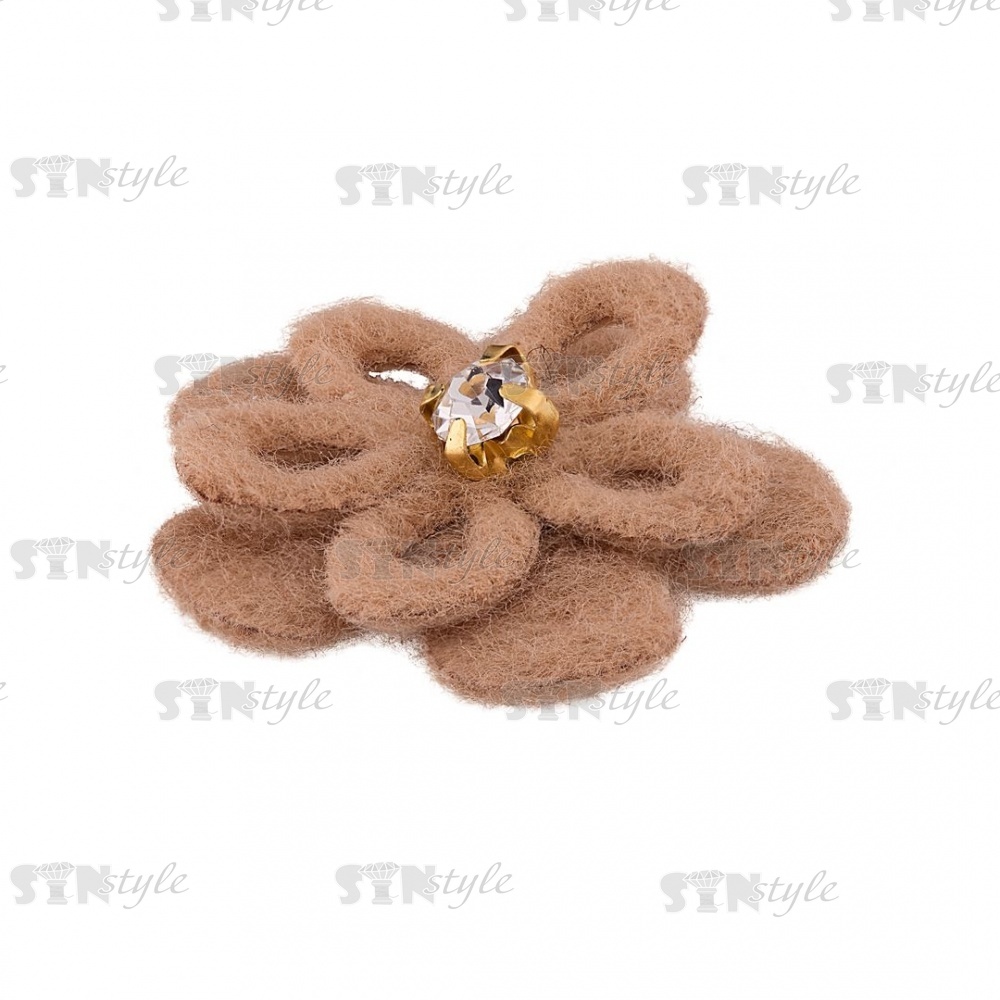 Аппликация 3D "Цветочек" со стразой, цвет капучино, размер 20 мм