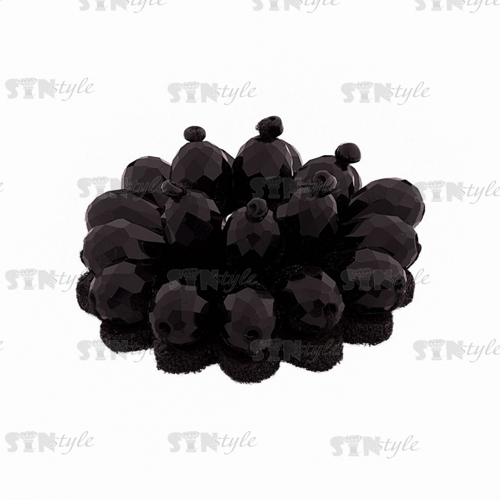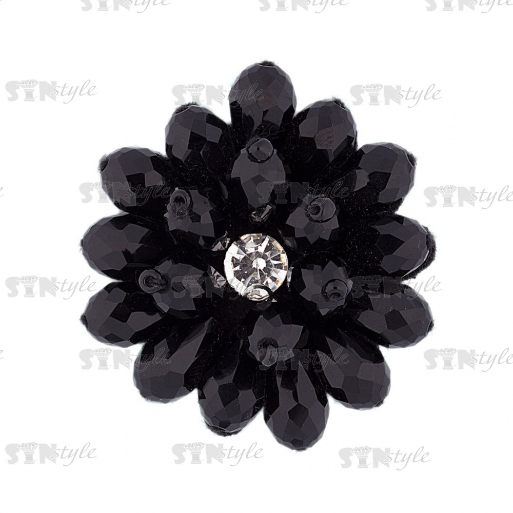 Аппликация с элементами из бисера, цвет черный+белая страза, диаметр 40 мм