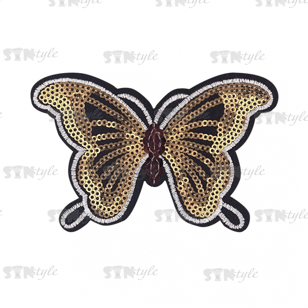 Термоаппликация "Бабочка"с пайетками, цвет золотой/основа черная, размер 115*73мм