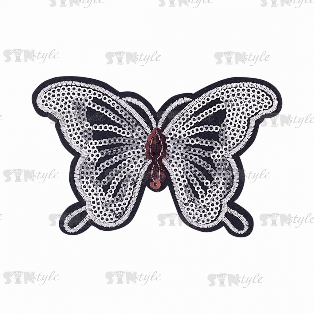 Термоаппликация "Бабочка"с пайетками, цвет серебряный/основа черная, размер 115х73 мм