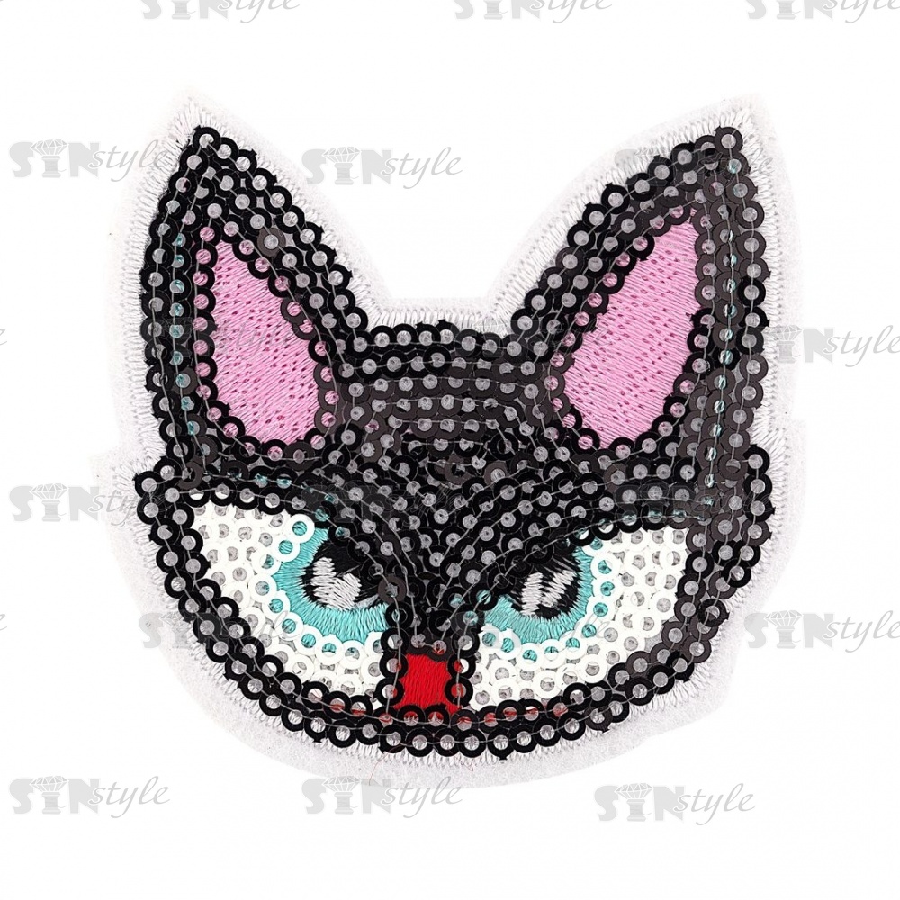 Термоаппликация "Кошка" с пайетками, размер 70х67 мм