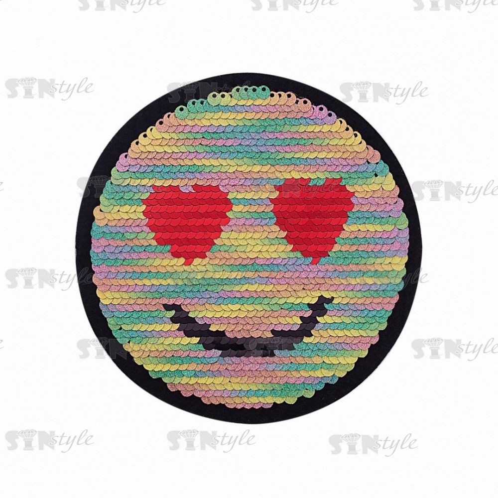 Термоаппликация-перевертыш из двухсторонних пайеток "Смайлик", размер 120 мм