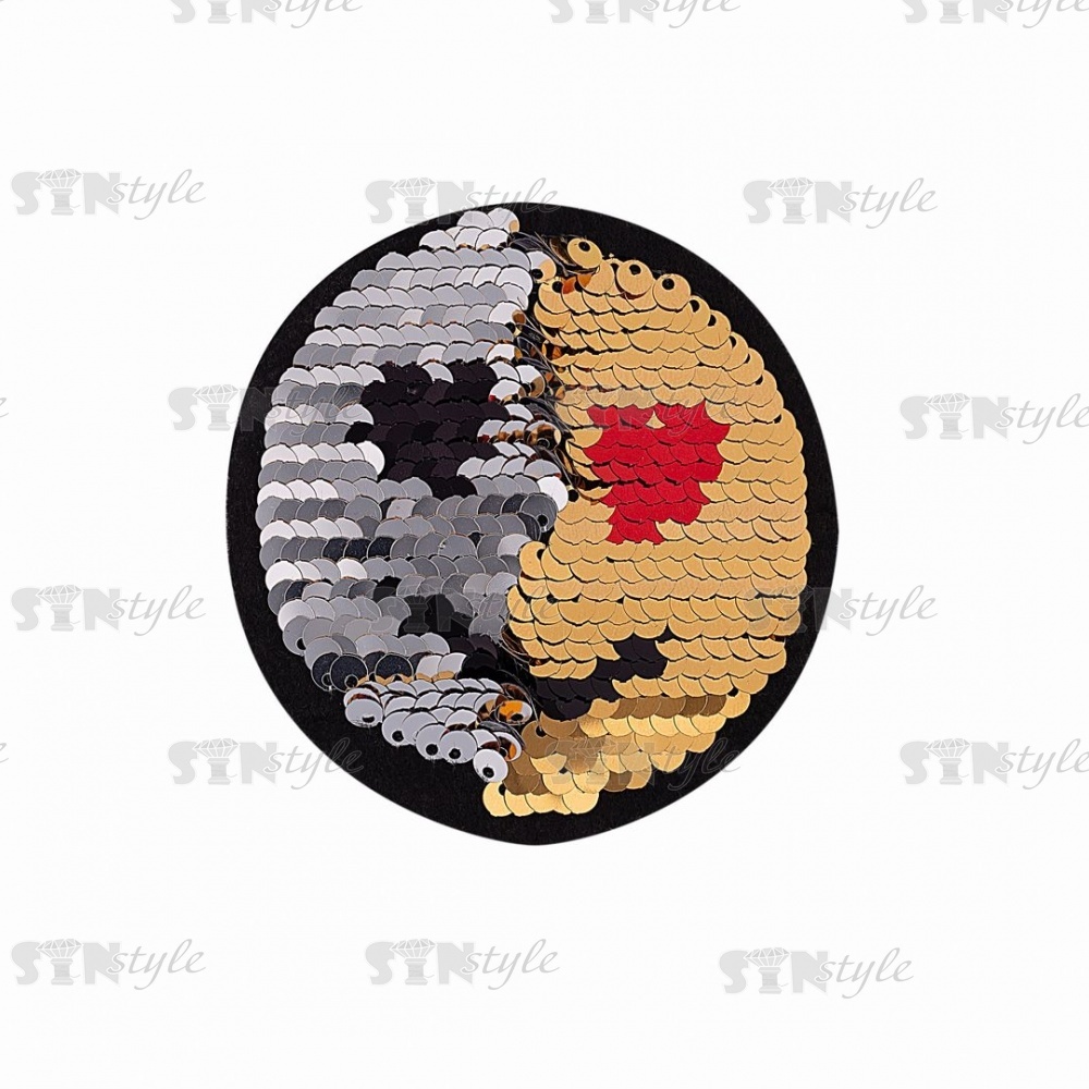 Аппликации с клеевым слоем, изготовлены из пайеток и высококачественных полиэстеровых нитей, плотное плетение создаёт яркий и чёткий рисунок.