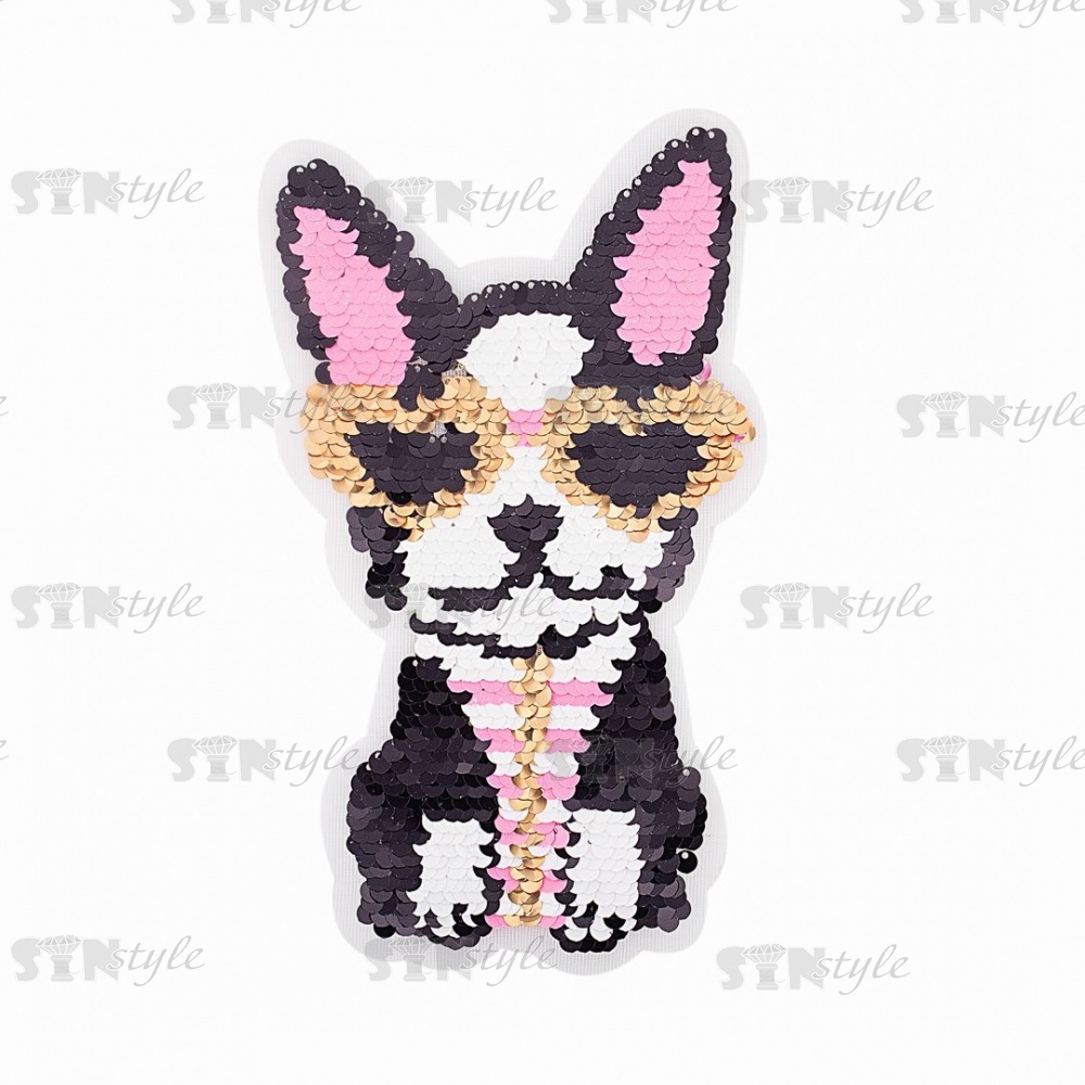 Аппликация на сетке из пайеток "Собачка", размер 115х200 мм, разноцветная