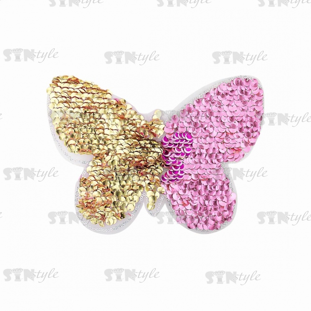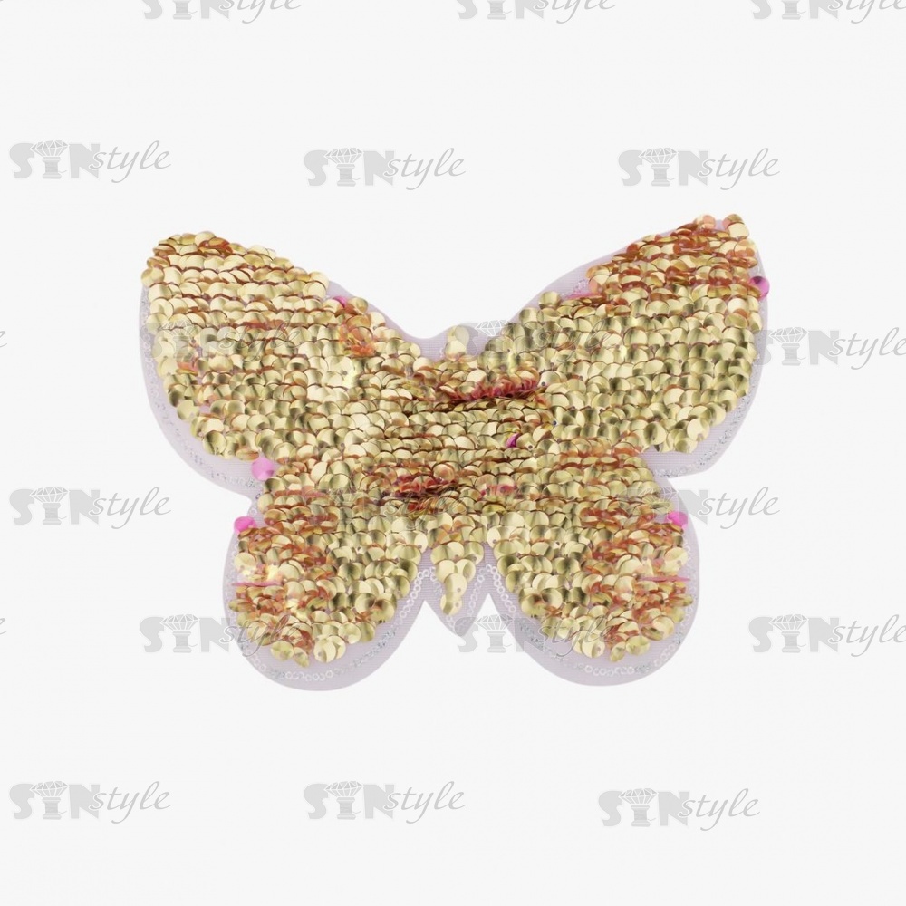 Аппликация на сетке из пайеток "Бабочка", размер 225х165 мм, цвет розовый+золотой