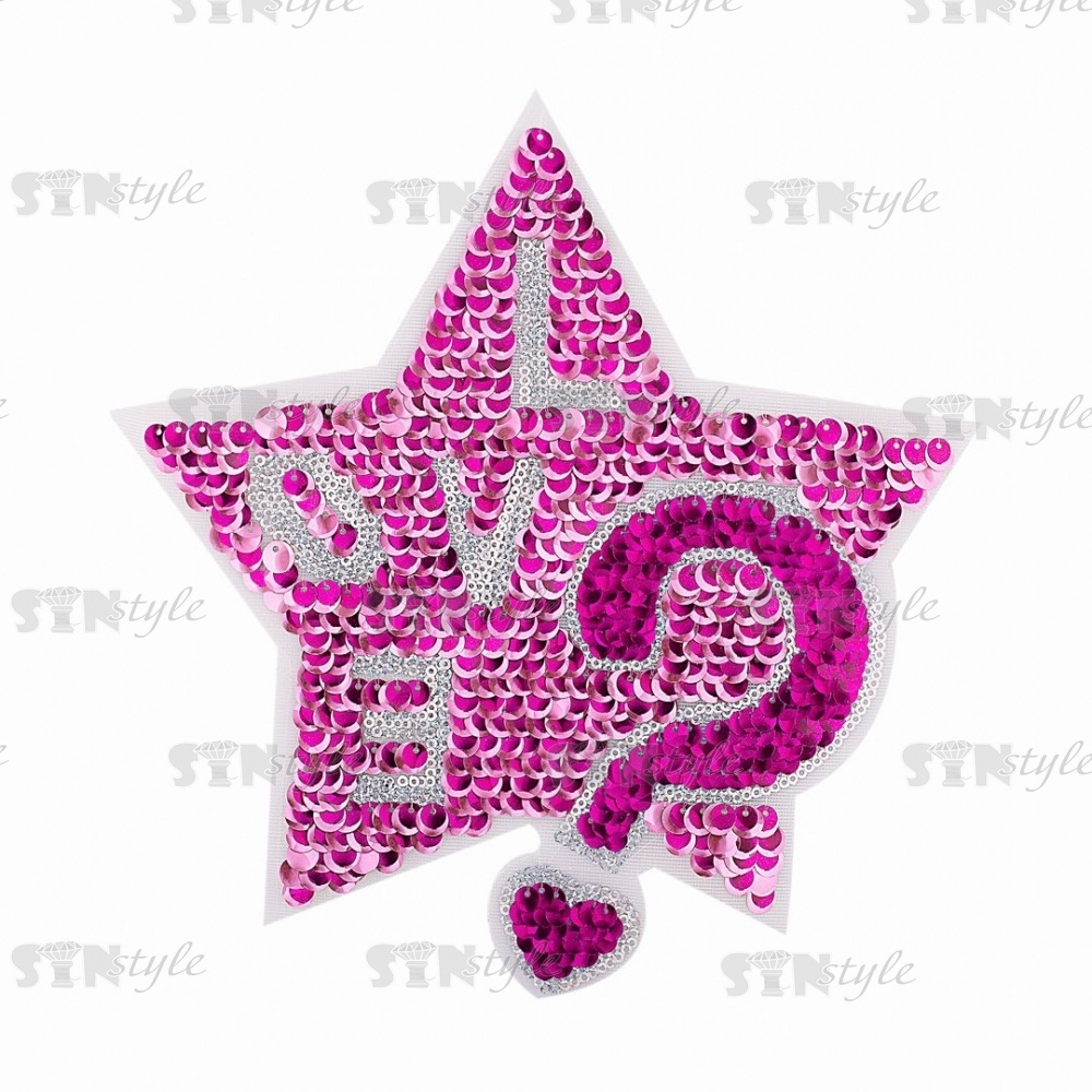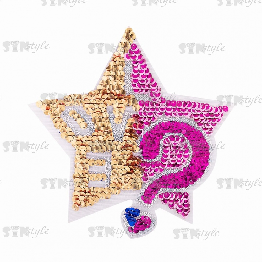 Аппликация на сетке из пайеток "Звезда", размер 210х225 мм, цвет розовый+золотой