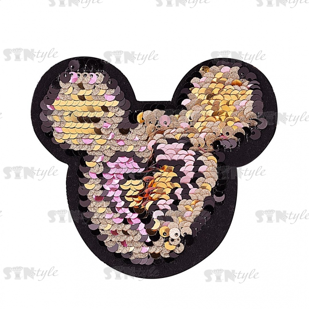 Термоаппликация "Мишка" с пайетками, размер 103х90 мм