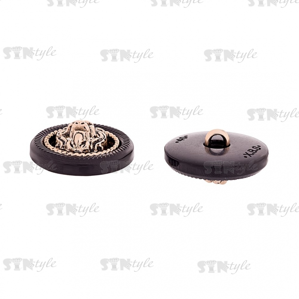 Пуговица пластиковая на ножке, размер 40L, цвет черный/золотой, 100 шт/уп (E04)