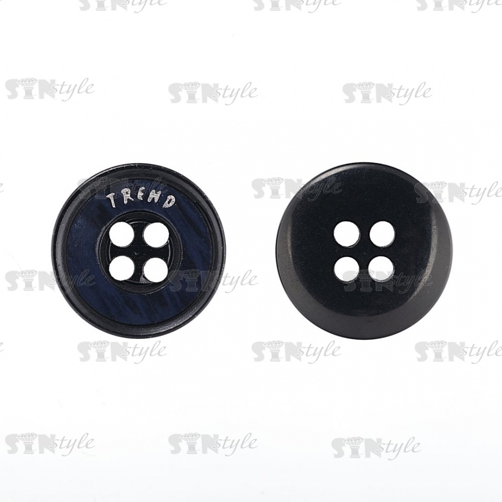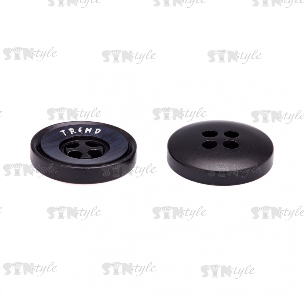 Пуговица пластиковая на четыре прокола, размер 24L, цвет черный