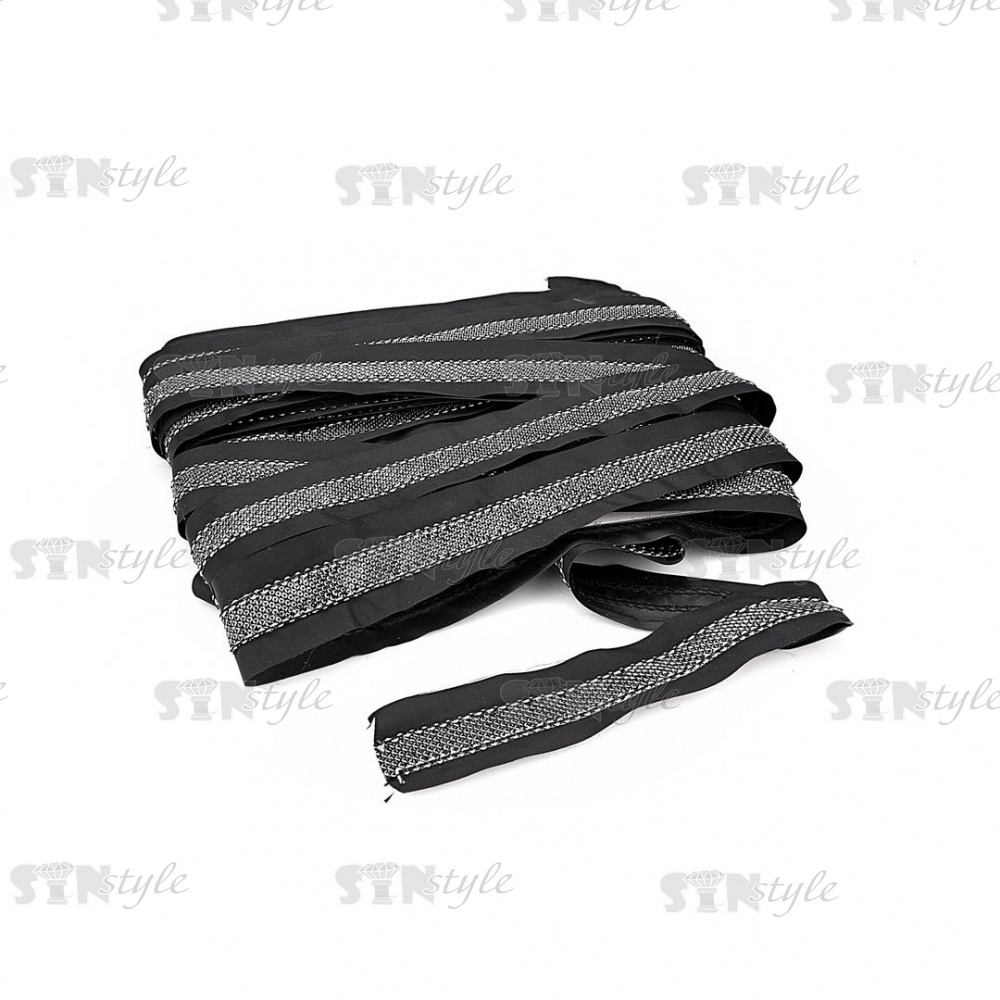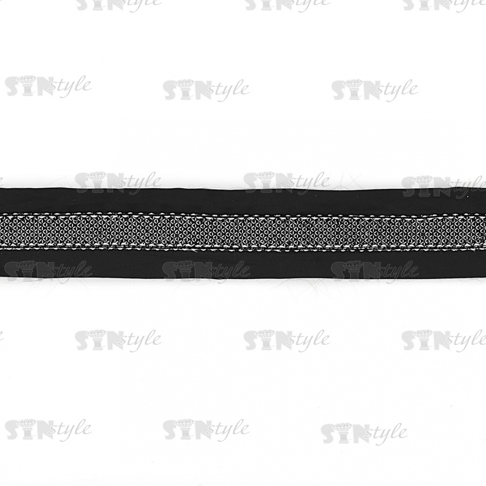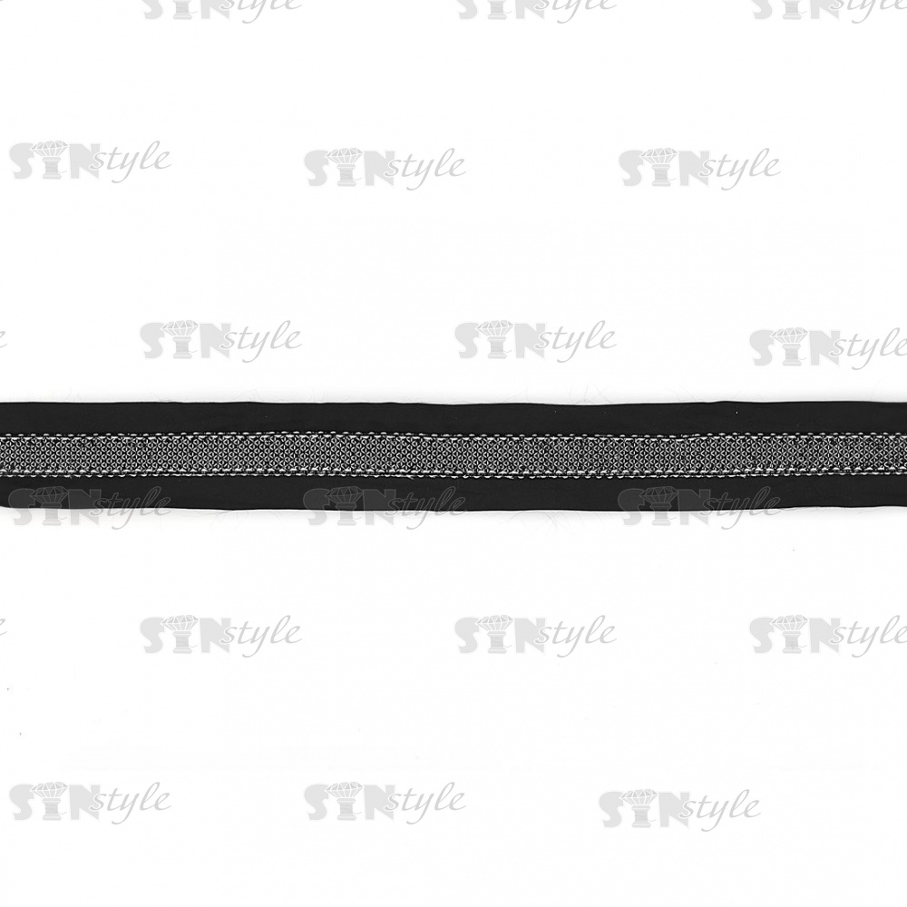 Декоративная тесьма с узором из металлизированной серебряной нити, цвет черный, ширина 27 мм, намотка 15 ярдов