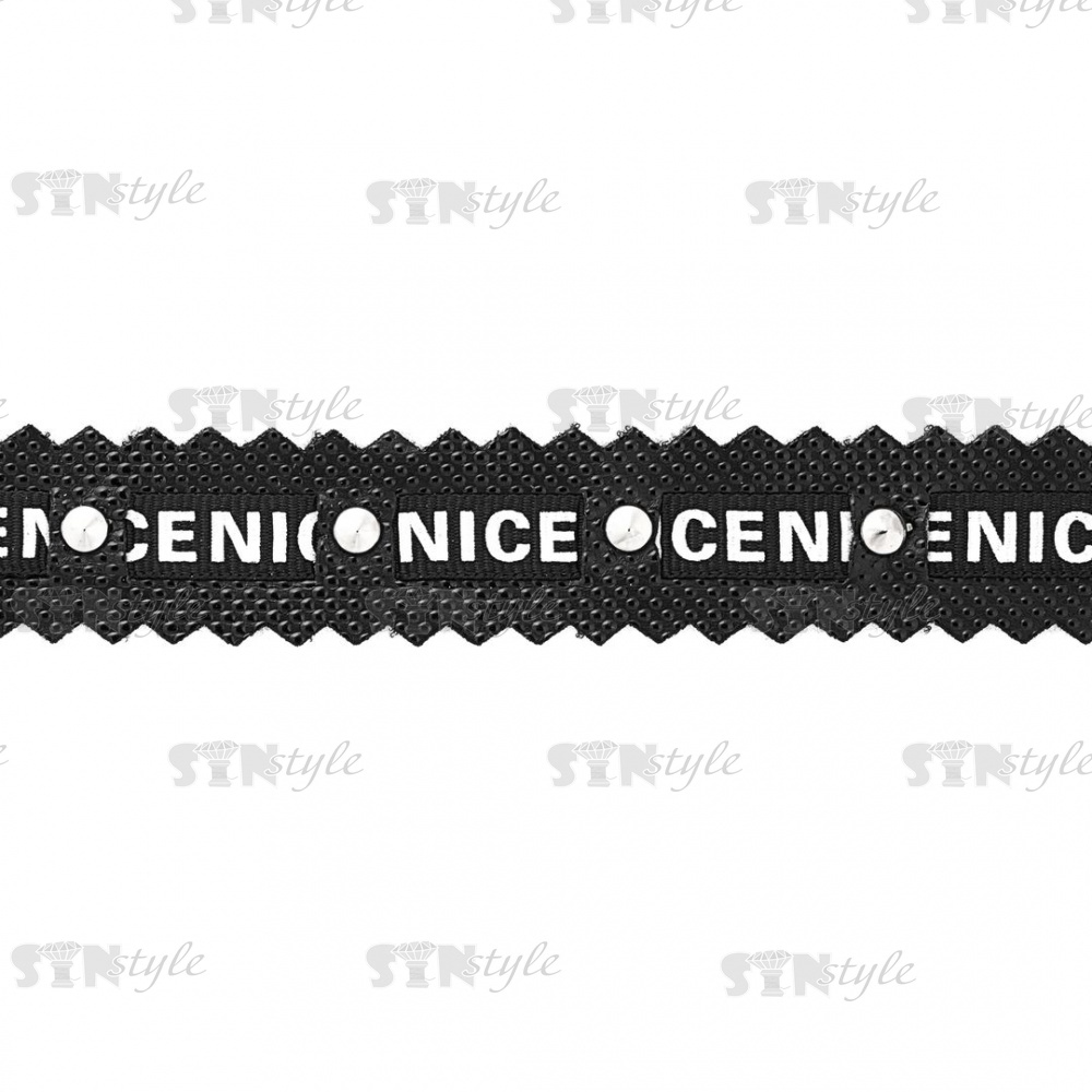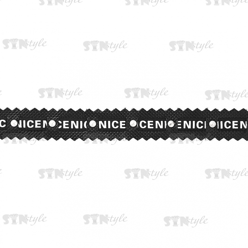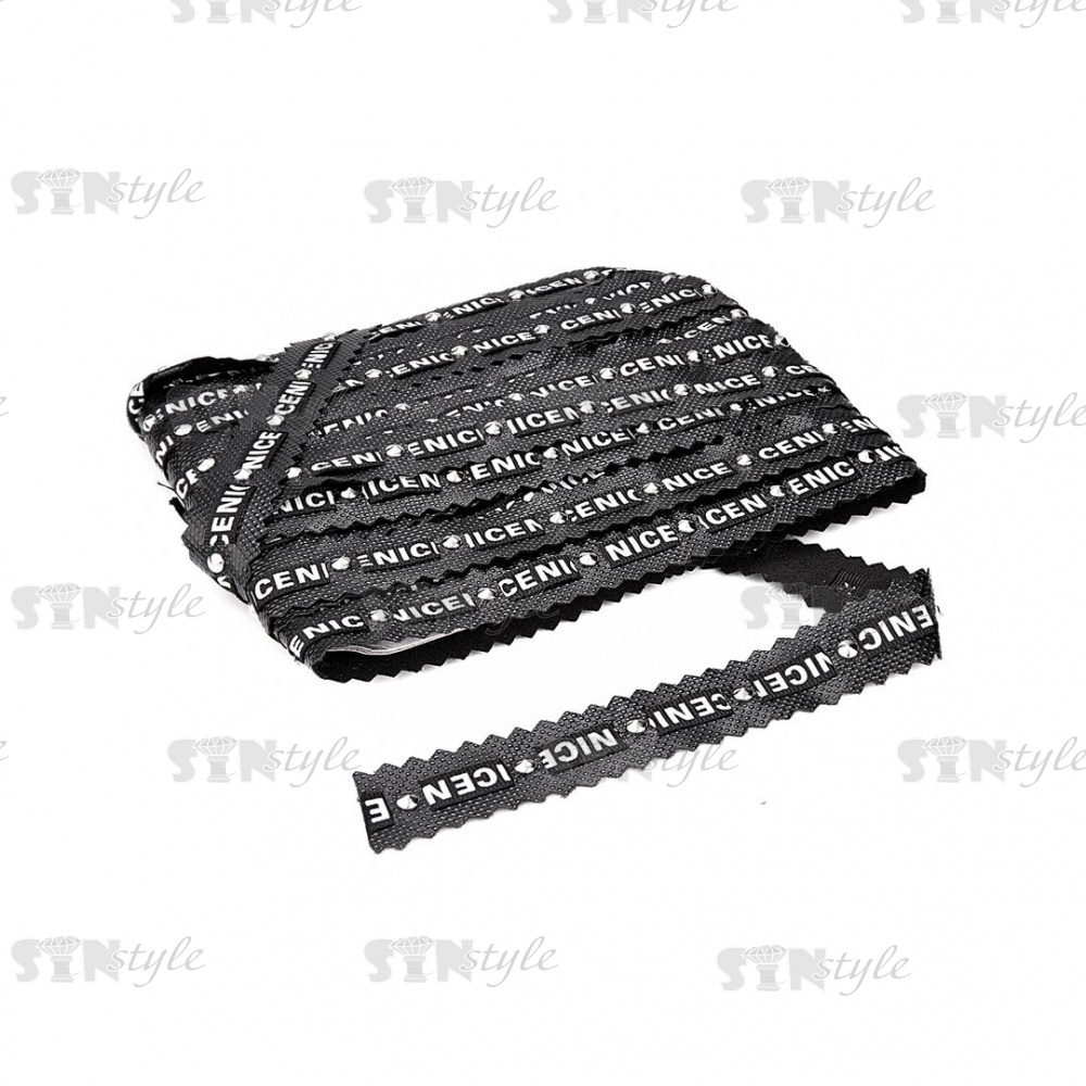 Декоративная тесьма с надписью и металлическими заклепками, цвет черный, ширина 25 мм, намотка 15 ярдов