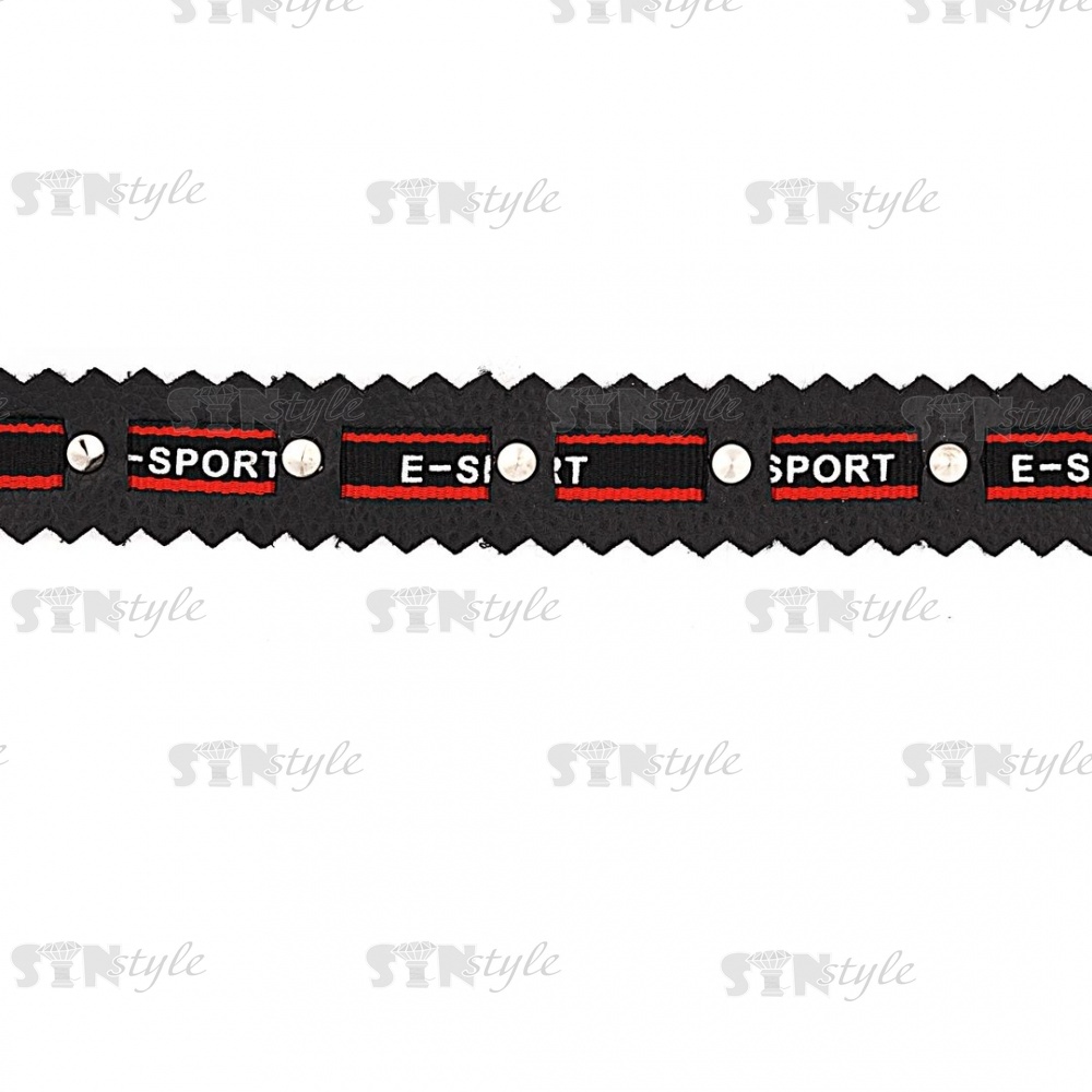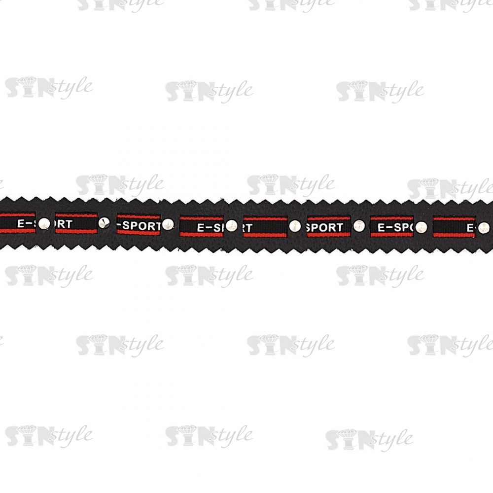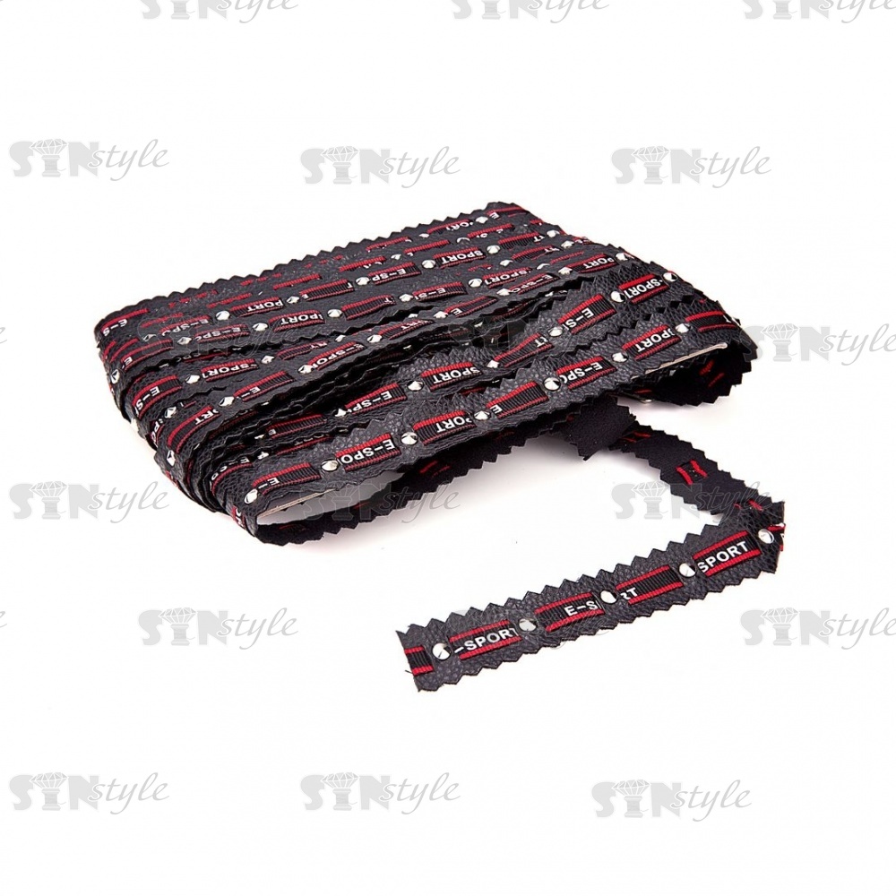 Декоративная тесьма "под кожу" с надписями и металлическими заклепками, ширина 25 мм, намотка 15 ярдов
