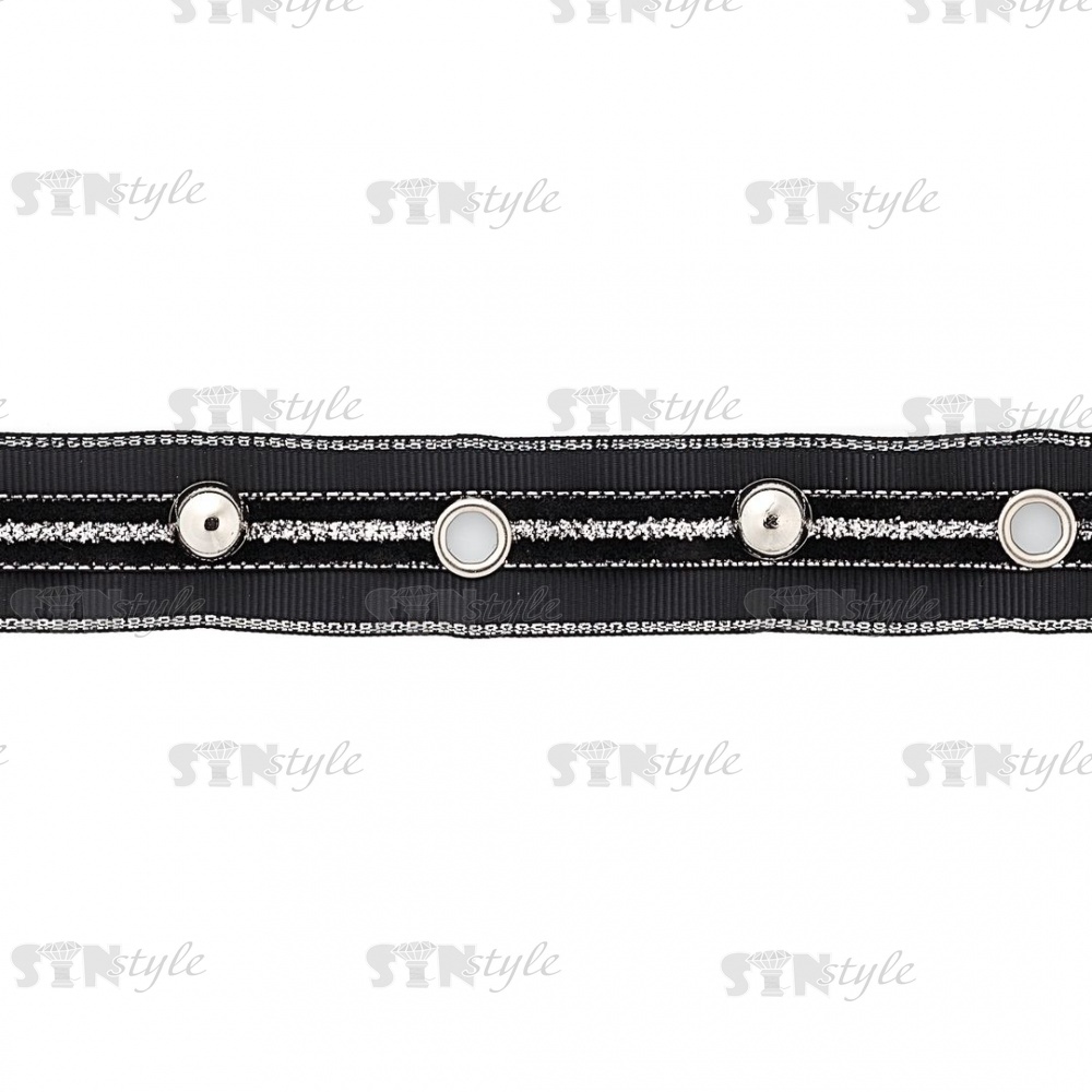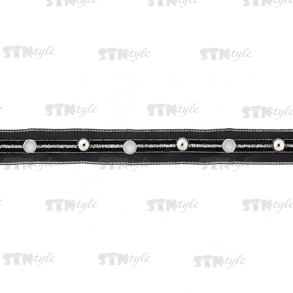 Декоративная тесьма с люверсами и стразами, цвет черный, ширина 25 мм, намотка 15 ярдов