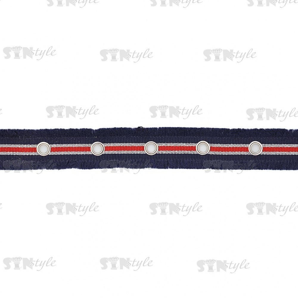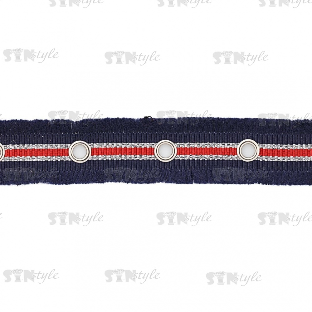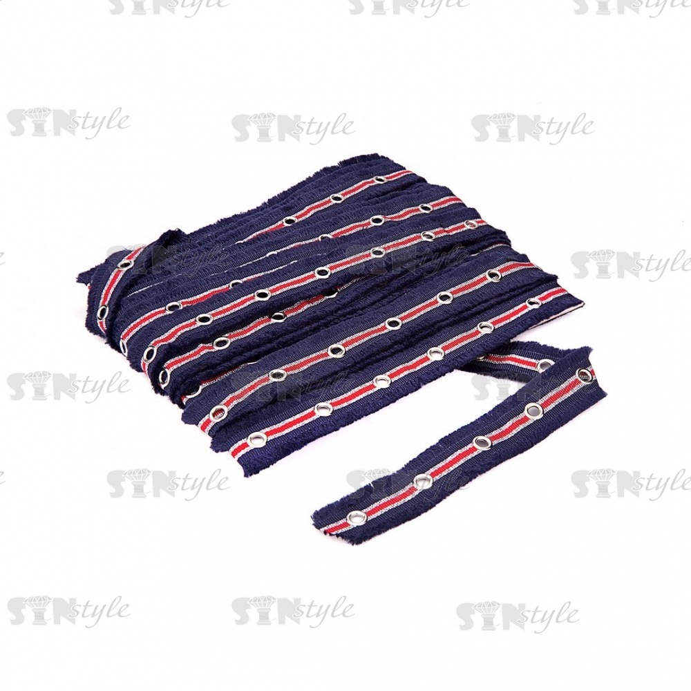 Декоративная тесьма с люверсами, цвет синий с красным, ширина 25 мм, намотка 15 ярдов