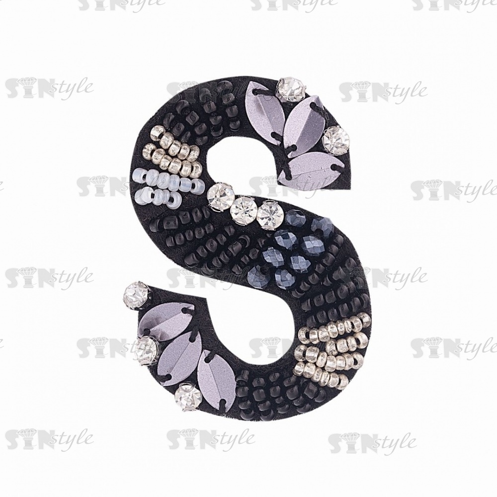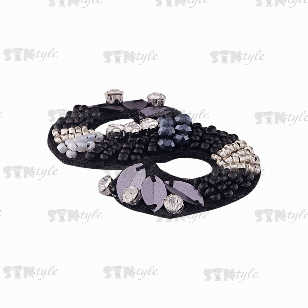 Аппликация с элементами из бисера и страз на фетровой основе, цвет черный+серебряный, размер 35х50 мм