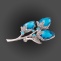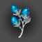 Брошь металлическая, застежка булавка, размер 35 мм х 60 мм, цвет серебро+синие и белые стразы