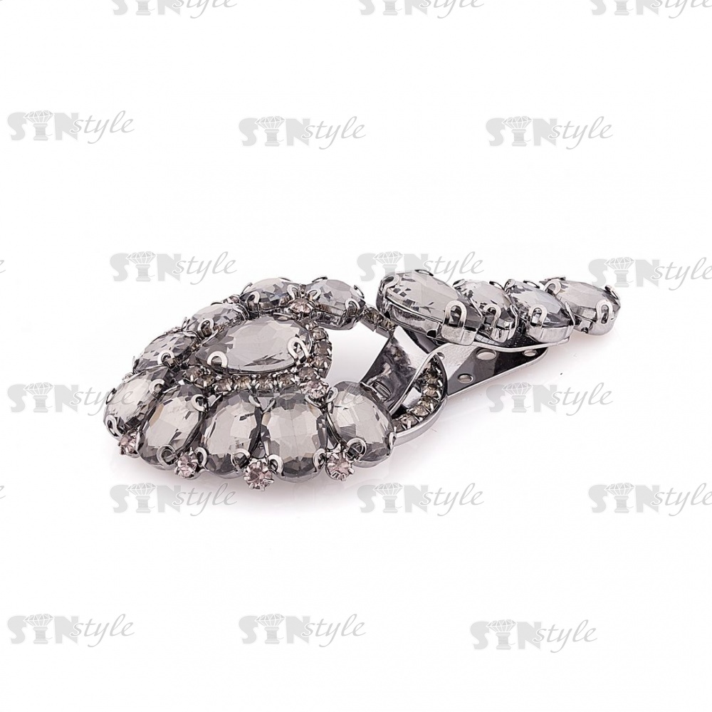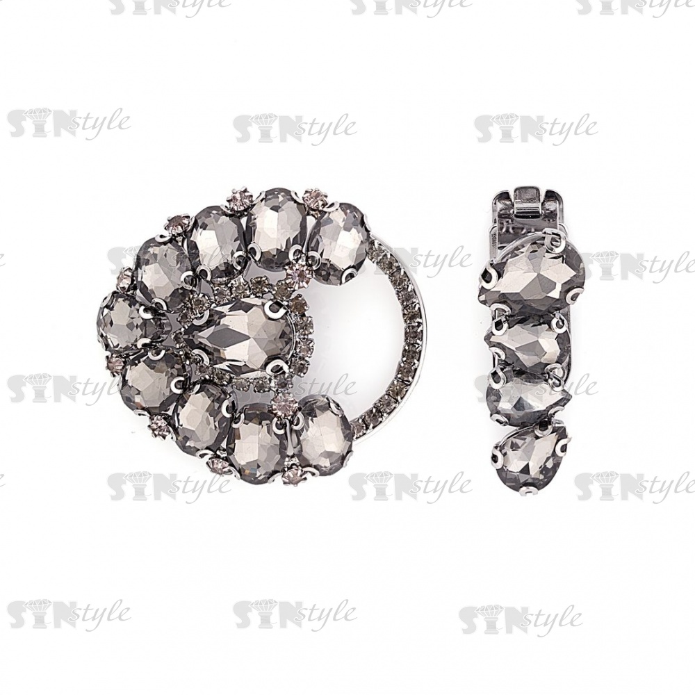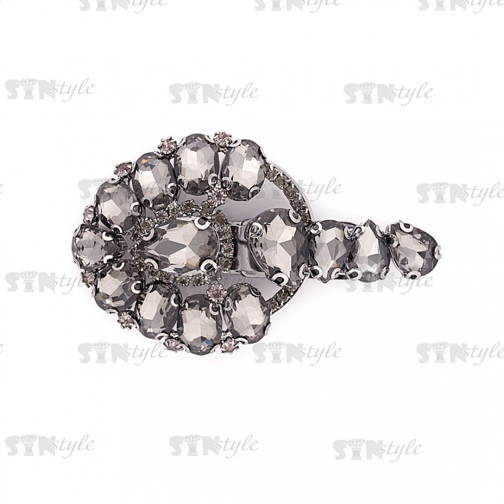 Застежка шубная металлическая, цвет темный никель, украшена стразами дымчатого цвета, размер 50*100мм
