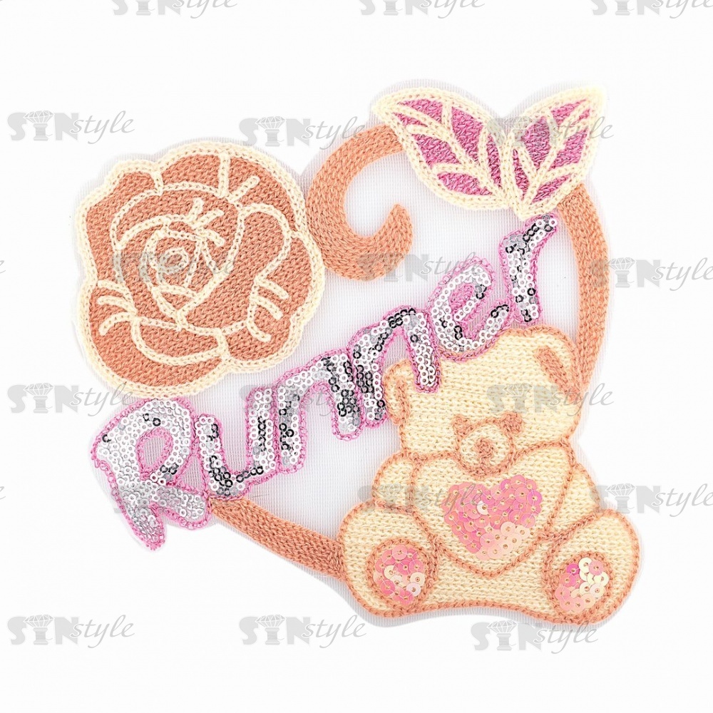Аппликация на сетке пришивная "Мишка", размер 180 мм х 170 мм