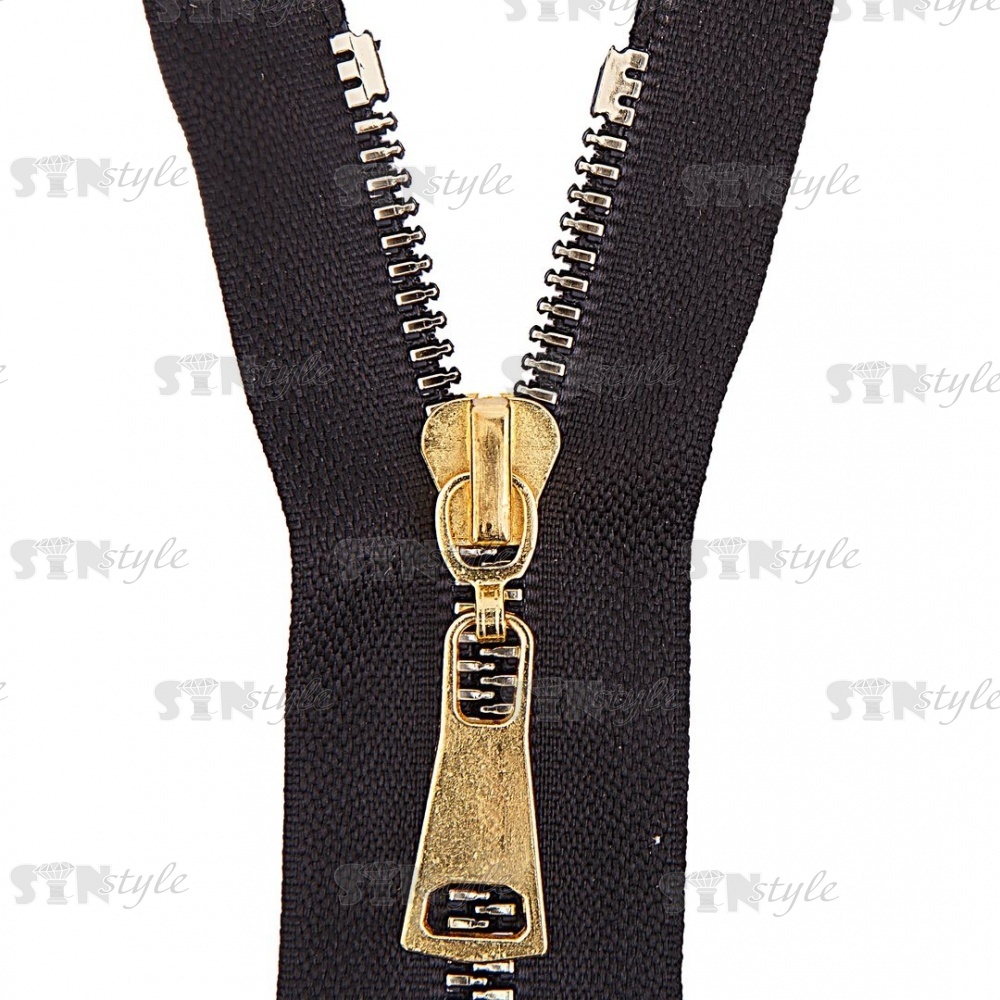 Молния трактор, тип 5, неразъемная, основа нейлон, длина 18 см, цвет 322 (черный), звенья металлизированные, цвет золотистый, бегунок золото