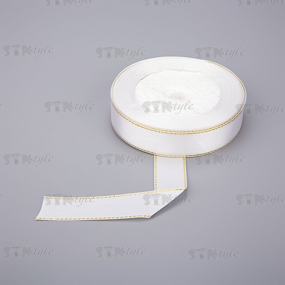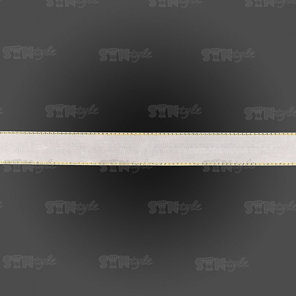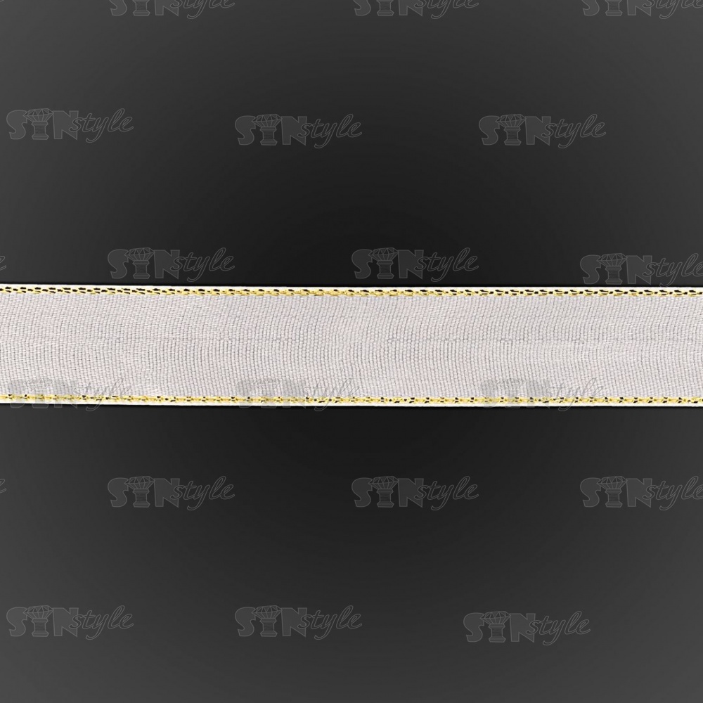 Декоративная белая тесьма атласная с люрексом золотого цвета, ширина 20 мм, намотка 25 ярдорв