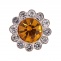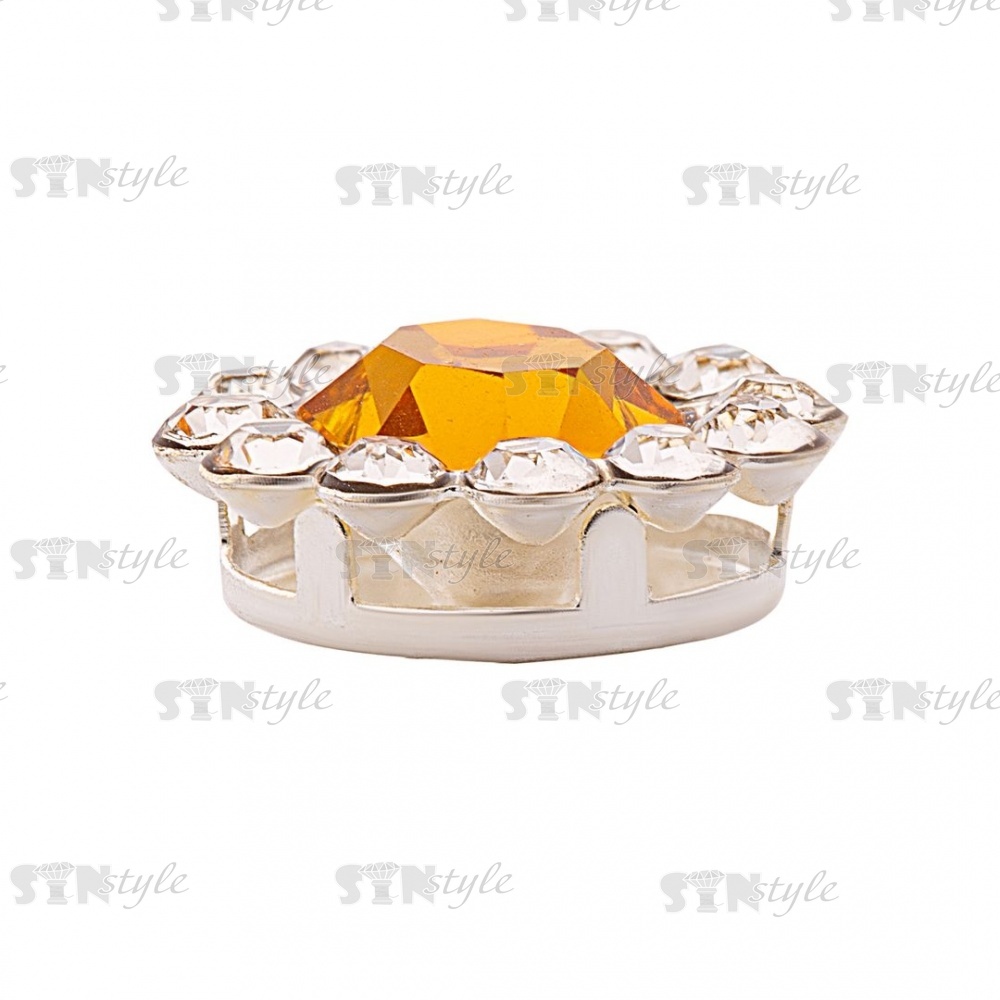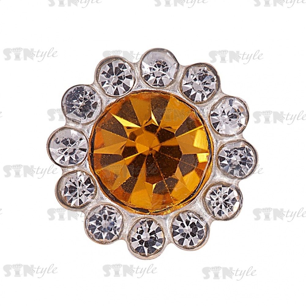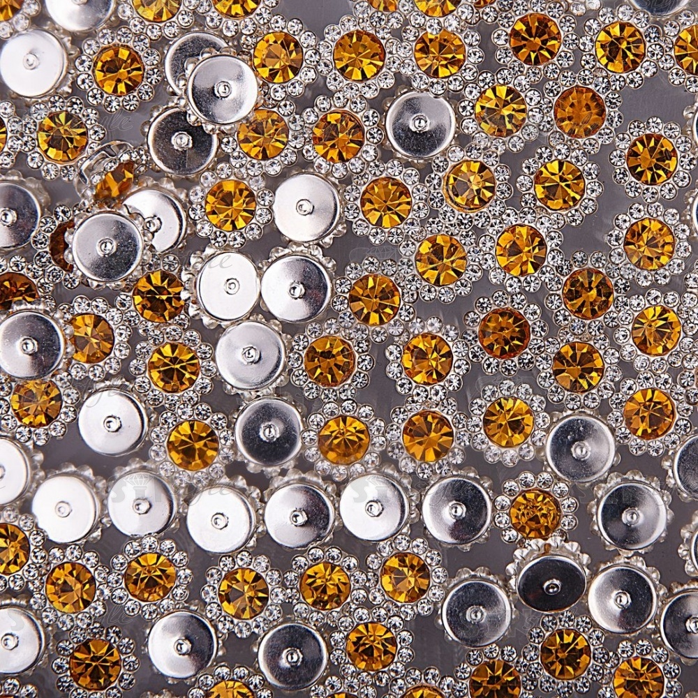 Стразы пришивные стеклянные в оправе, форма цветок, цвет серебро+желтый+белый, диаметр 12 мм