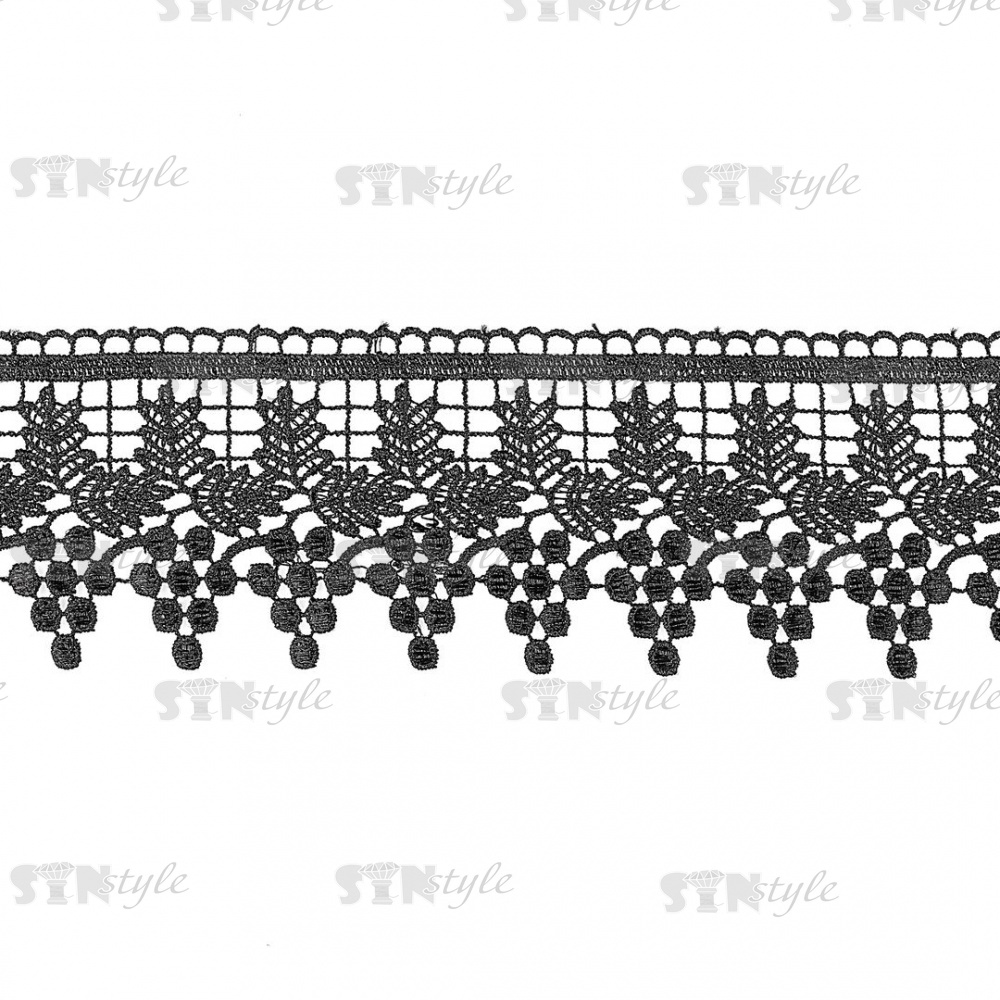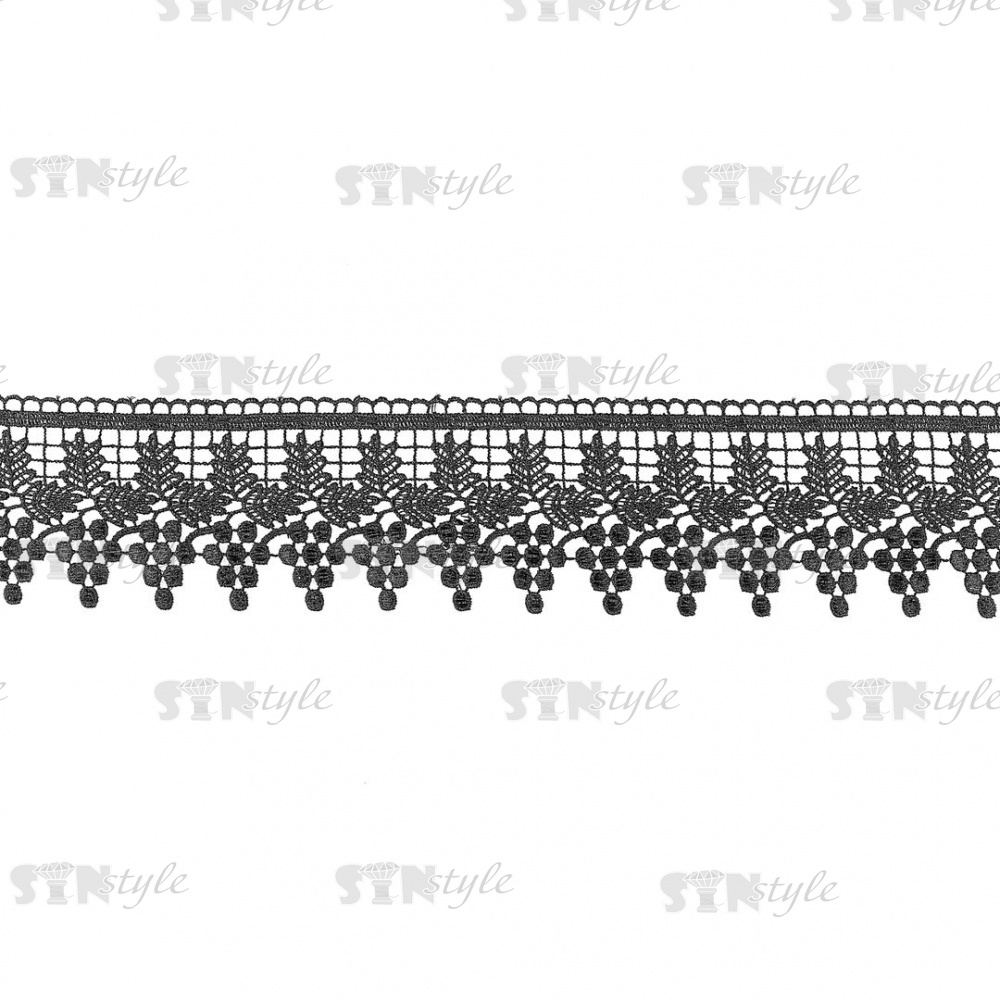 Кружево ажурное, ширина 75 мм, цвет черный, намотка 15 ярдов