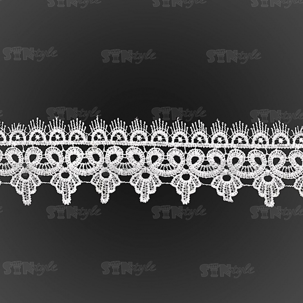 Кружево ажурное, нежное переплетение причудливых узоров с фестонами по краям, ширина 55 мм, цвет кипенно-белый, намотка 15 ярдов