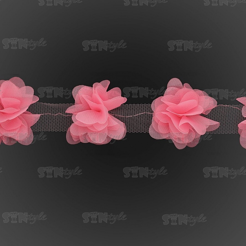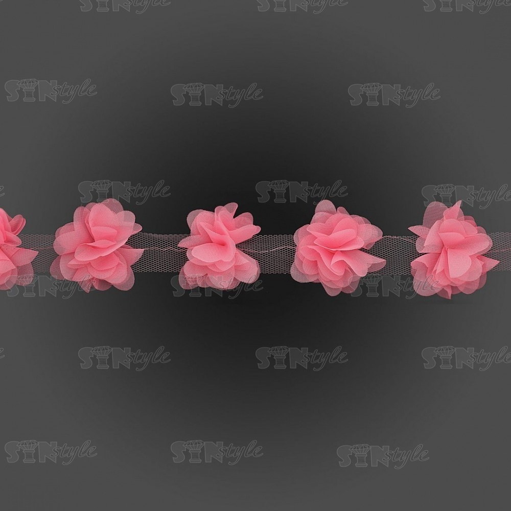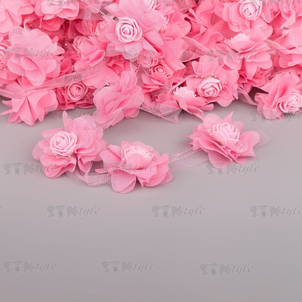 Кружево "Цветочки", ширина 60 мм, цвет розовый (107), намотка 10 ярдов