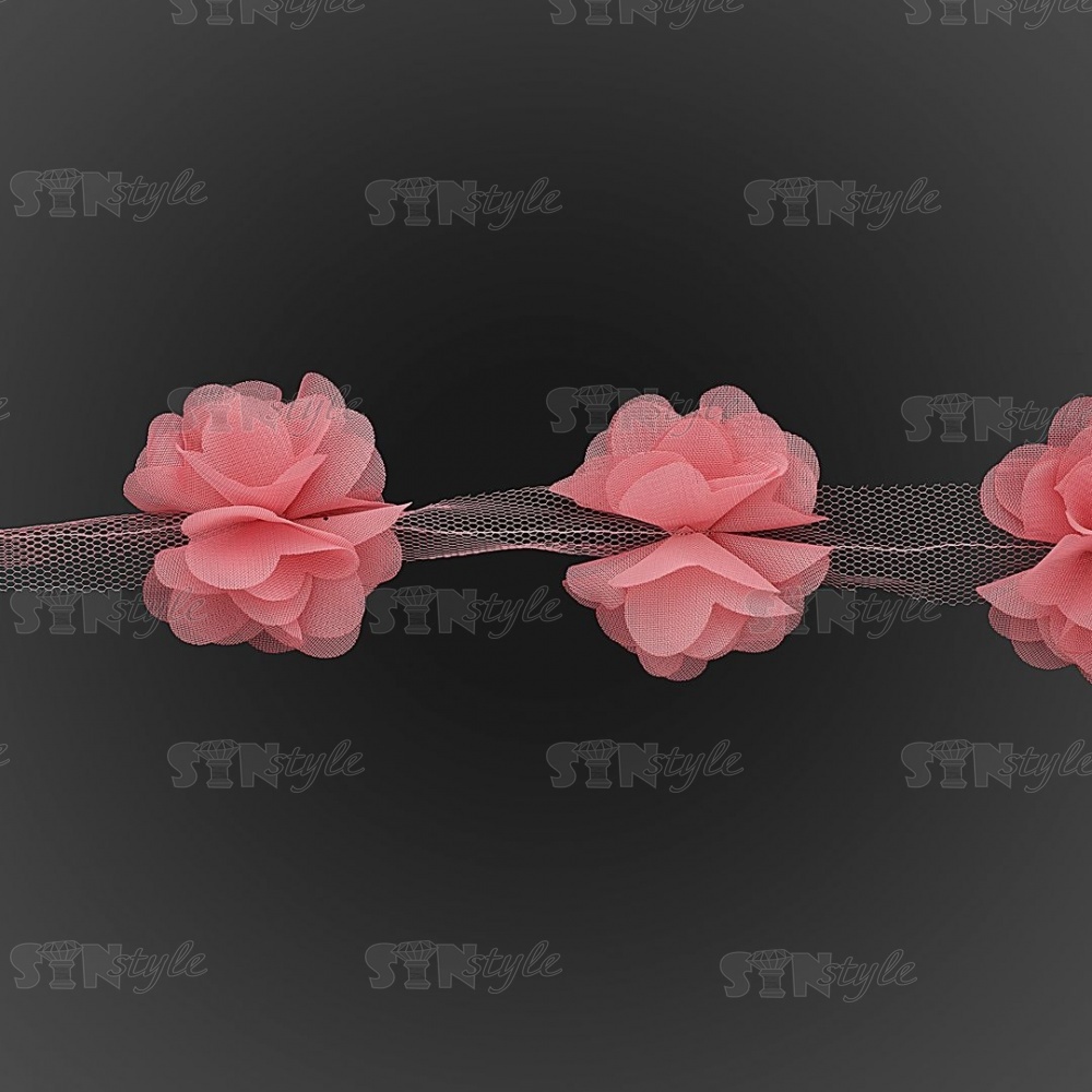 Кружево "Цветочки", ширина 60 мм, цвет пыльно-розовый (50), намотка 10 ярдов