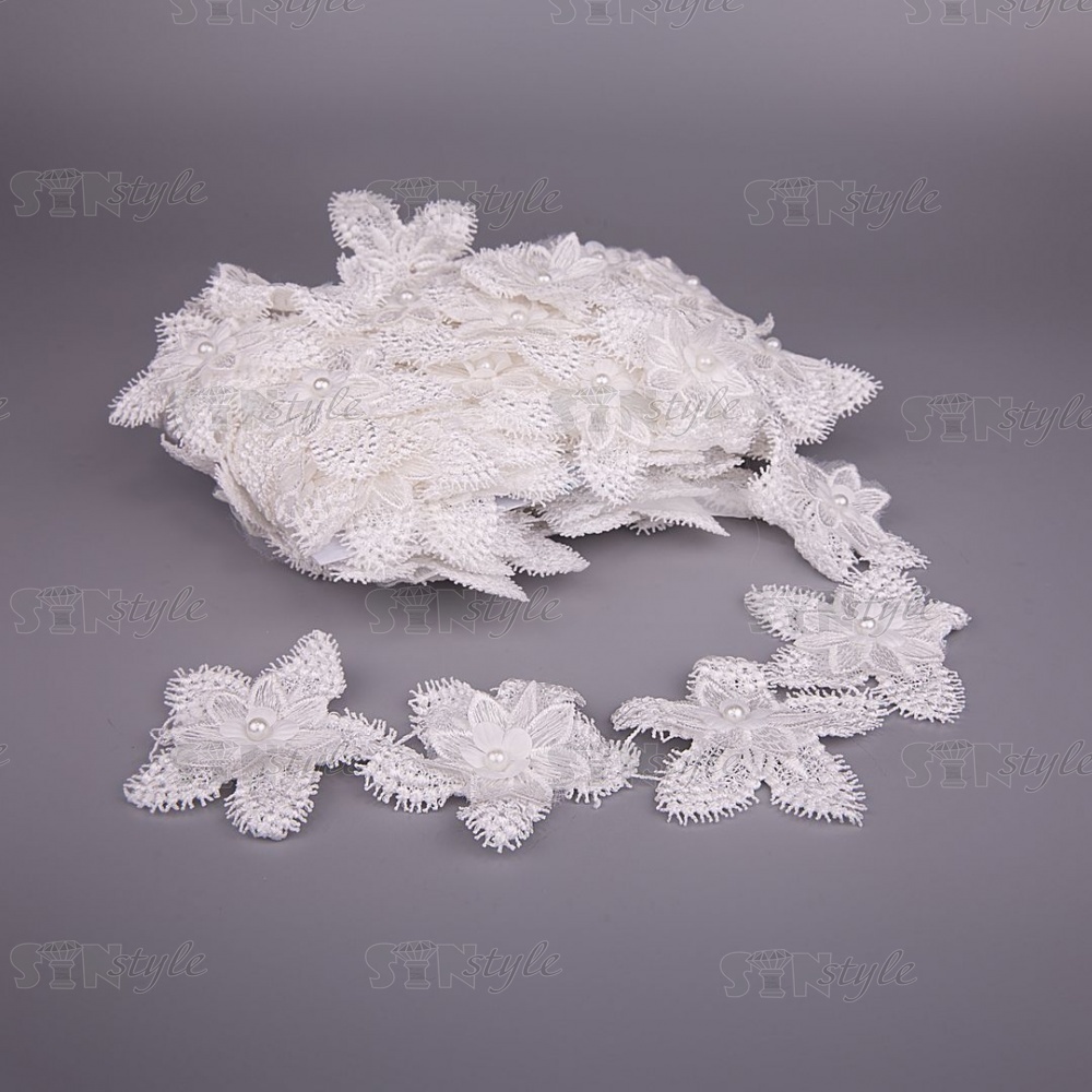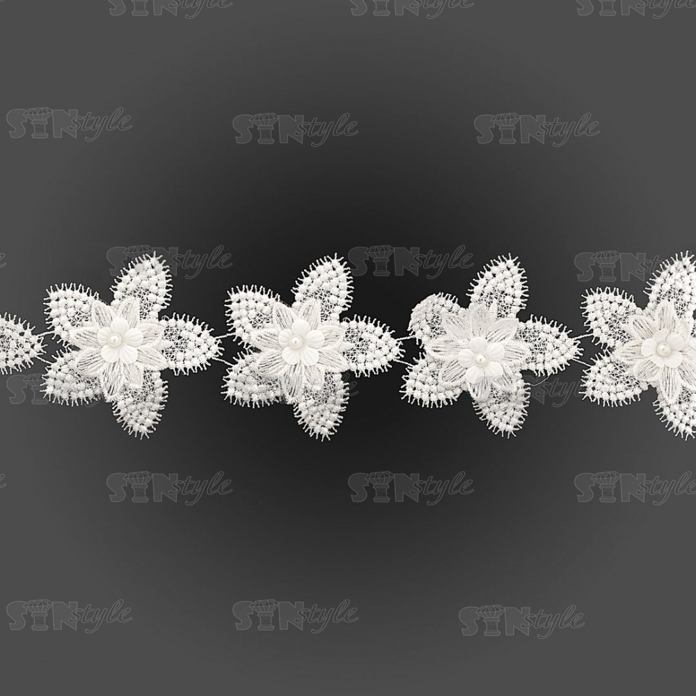 Кружево Цветочное с бусинами в цвет кружева, намотка 10 ярдов, ширина 80 мм, цвет белый