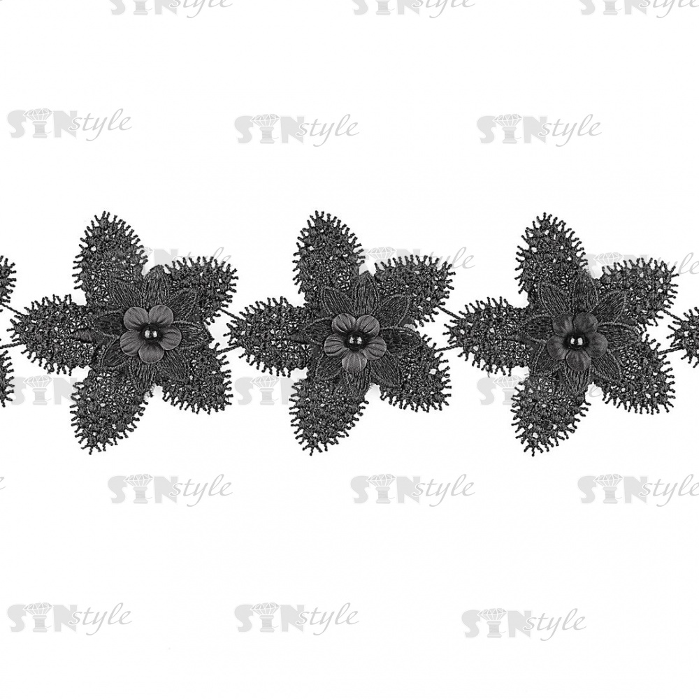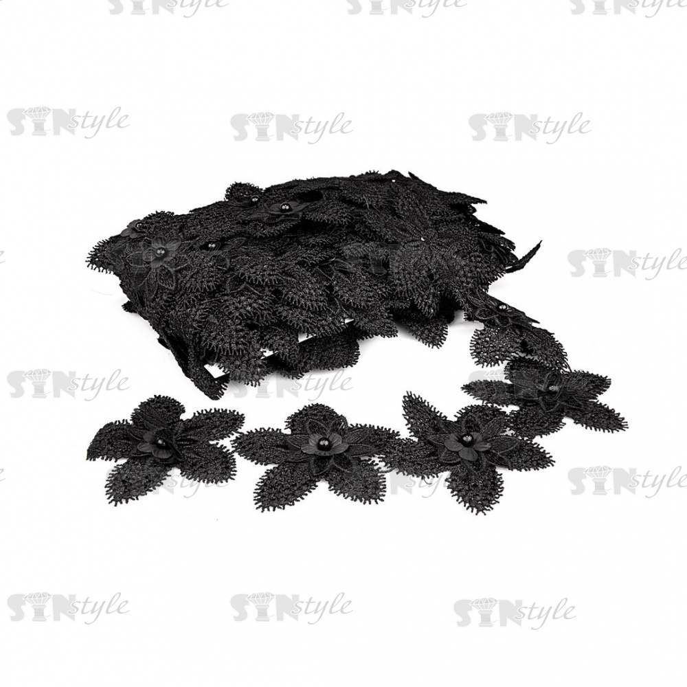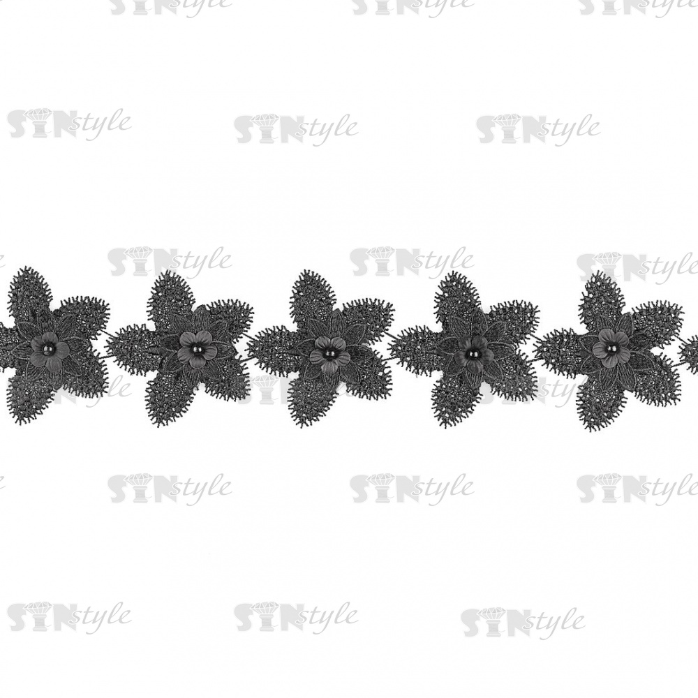 Кружево цветочное с бусинами в цвет кружева, намотка 10 ярдов, ширина 70 мм, цвет черный
