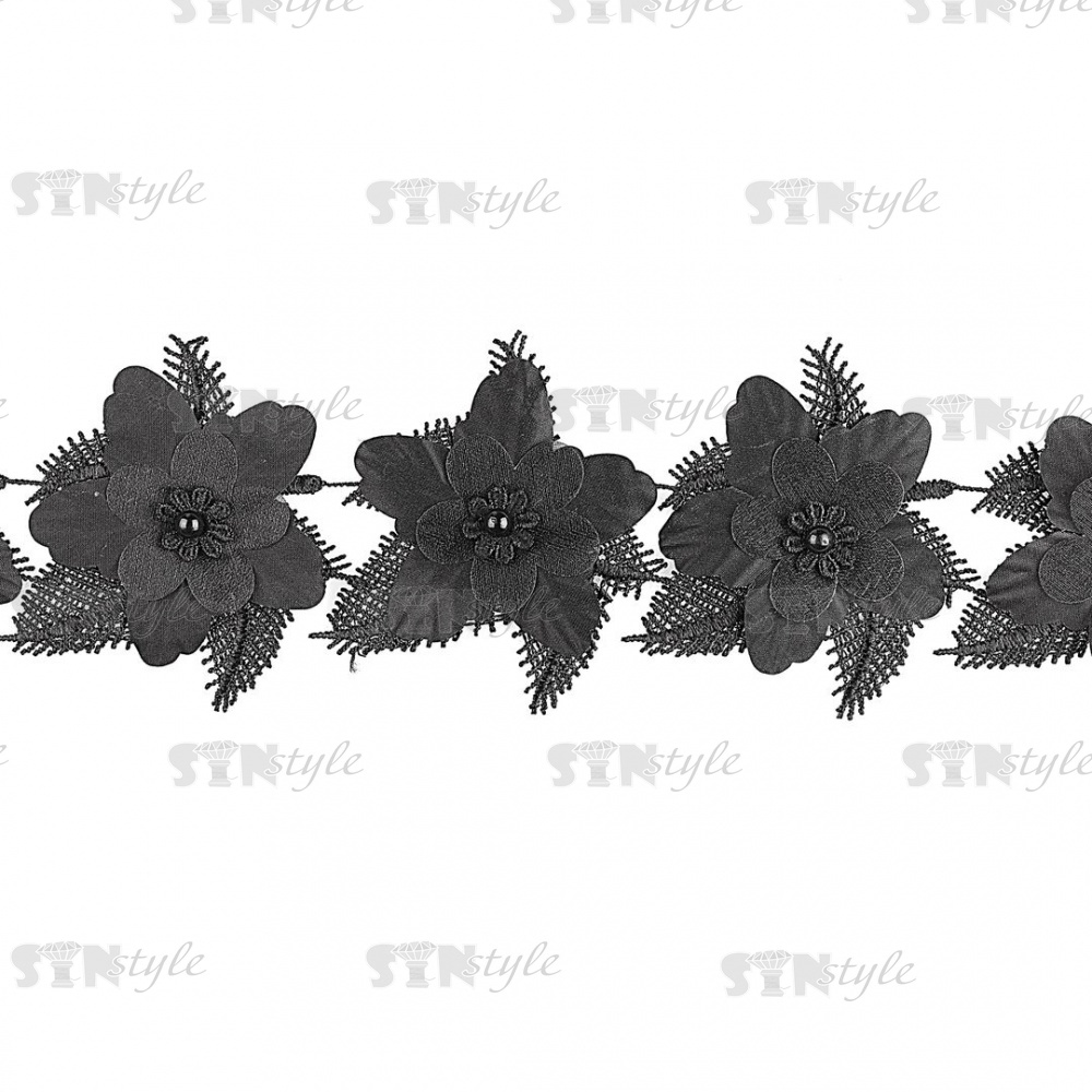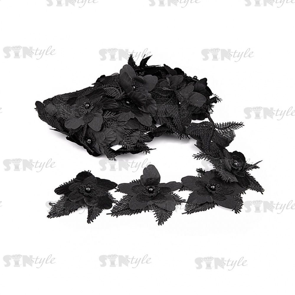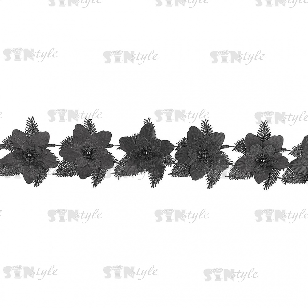 Кружево Цветочное, красивая цветочная гирлянда с бусиной в центре цветка, намотка 10 ярдов, ширина 75 мм, цвет черный