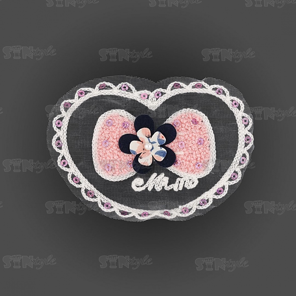 Аппликация на сетке пришивная "Бантик", размер 135 мм х110 мм