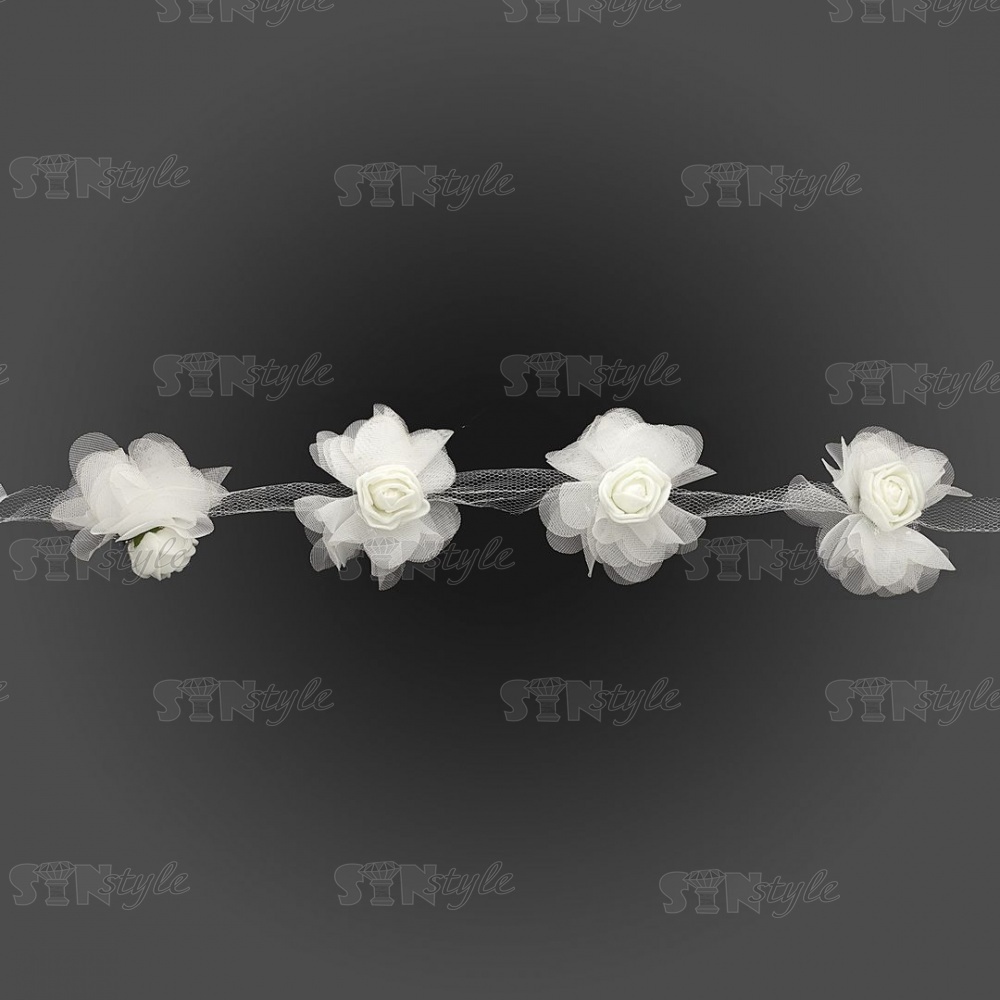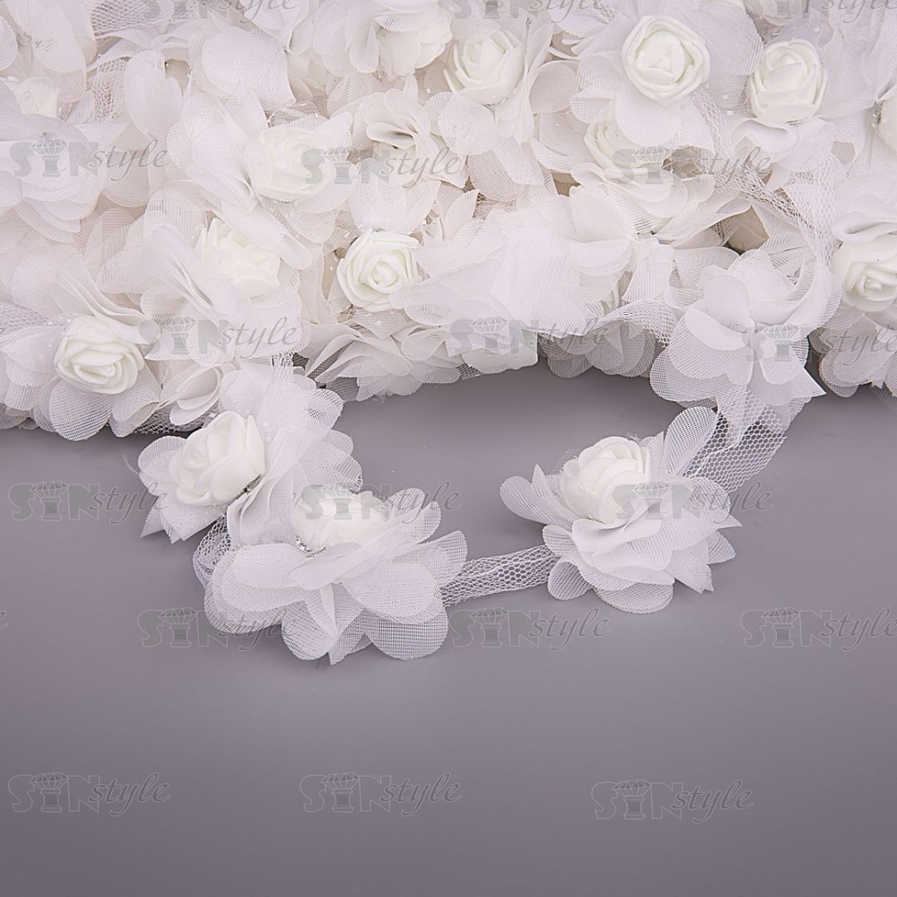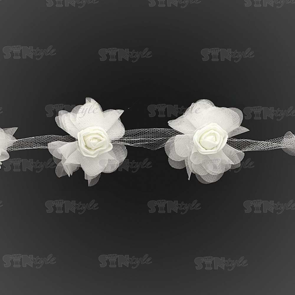 Кружево "Цветочки" на капроновой ленте, нежная цветочная гирлянда с объемными цветами, ширина 60 мм, цвет белый (65), намотка 10 ярдов