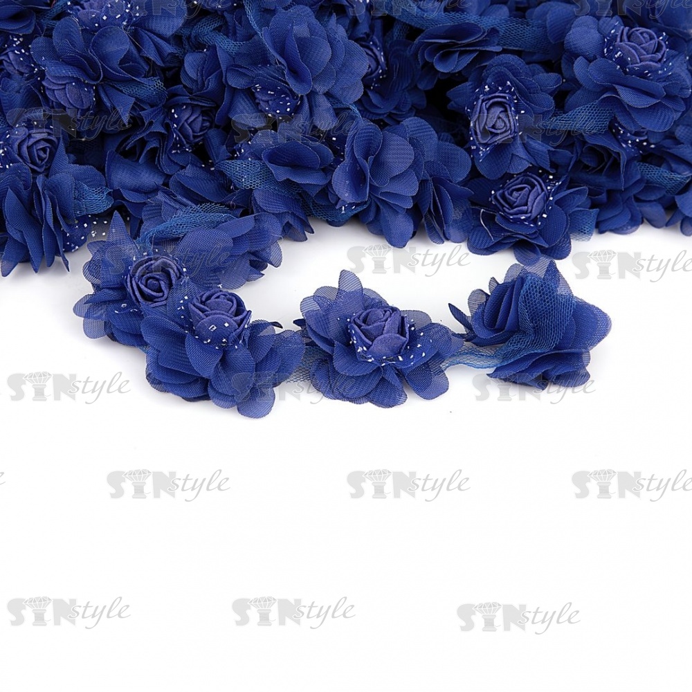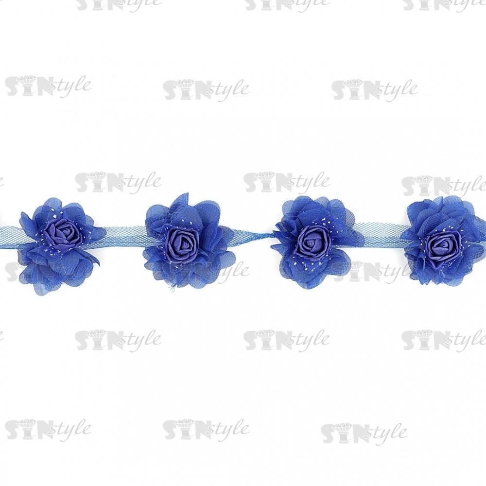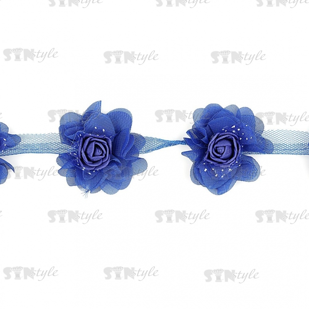 Кружево "Цветочки" на капроновой ленте, нежная цветочная гирлянда из объемнх цветов, ширина 60 мм, цвет электрик (110), намотка 10 ярдов