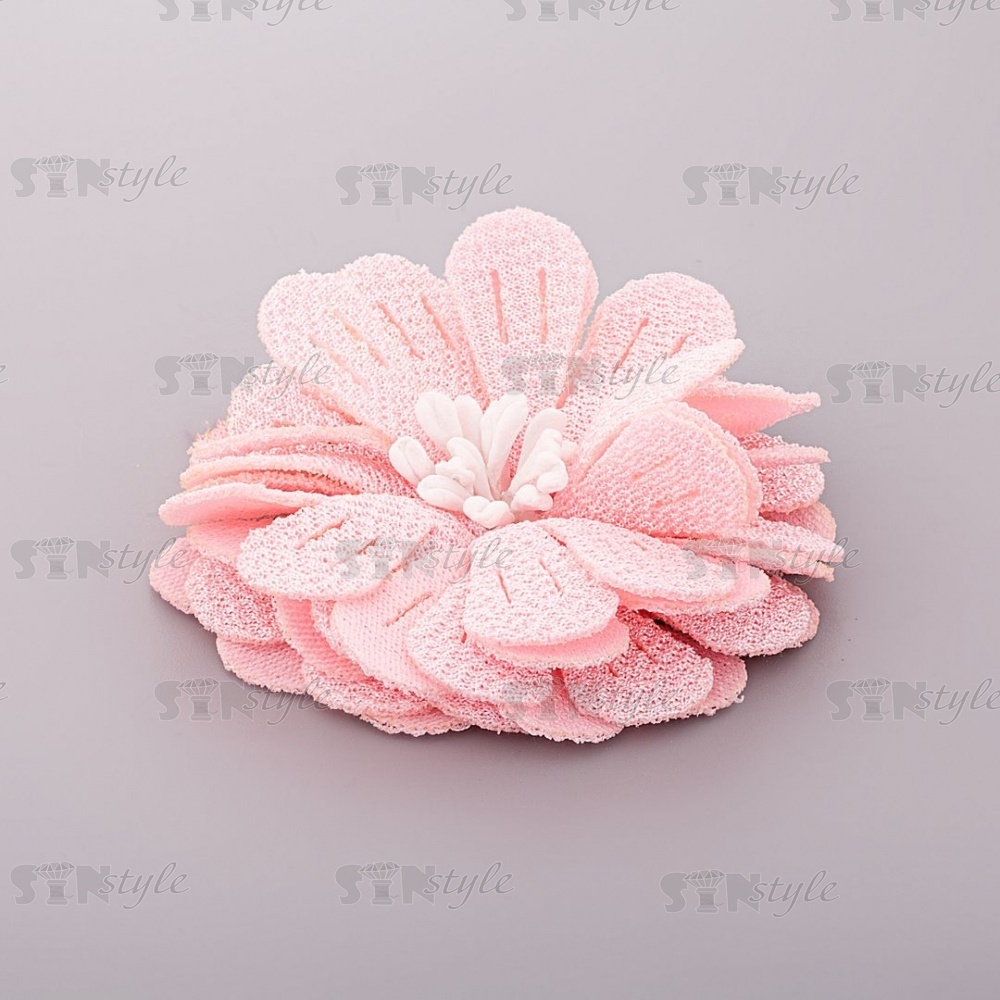 Тканевый оригинальный цветок на фетровой основе с лепестками и сердцевинкой из тычинок. Тканевые цветы имеют широкий диапазон применения: как отделочный элемент для платья, блузки, театрального костюма, шапочки, косынки берета, повязки, ободка для волос, резинок, заколок, а так же обуви из текстиля. Также цветок может быть использован в украшении букетов, подарочной упаковки, праздничных композиций и поможет решить любую задачу декорирования.