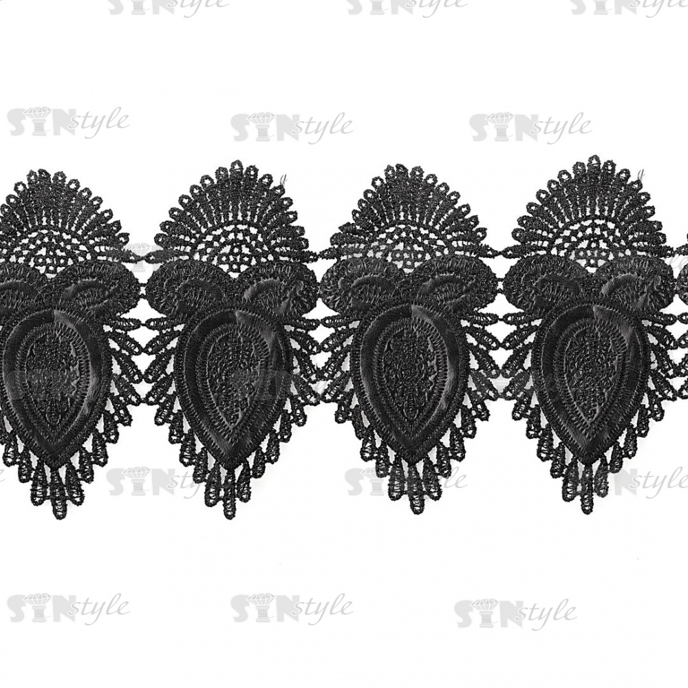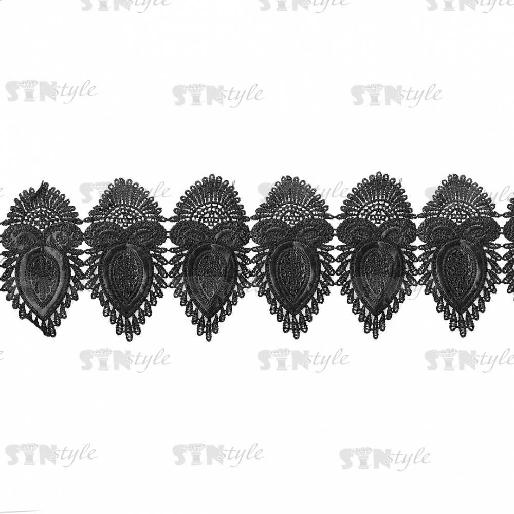 Кружево кожаное, красивая ажурная гирлянда, состоящая из отдельных причудливых элементов, ширина 145 мм, намотка 10 ярдов, цвет черный
