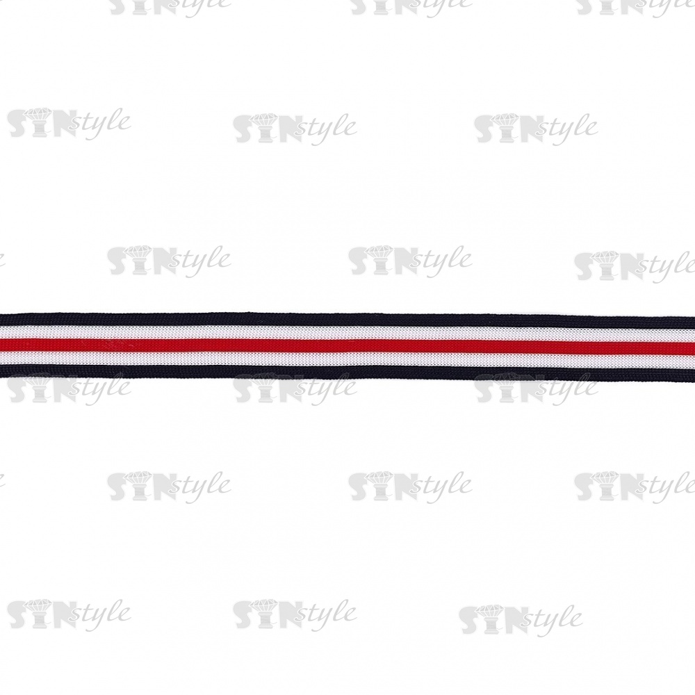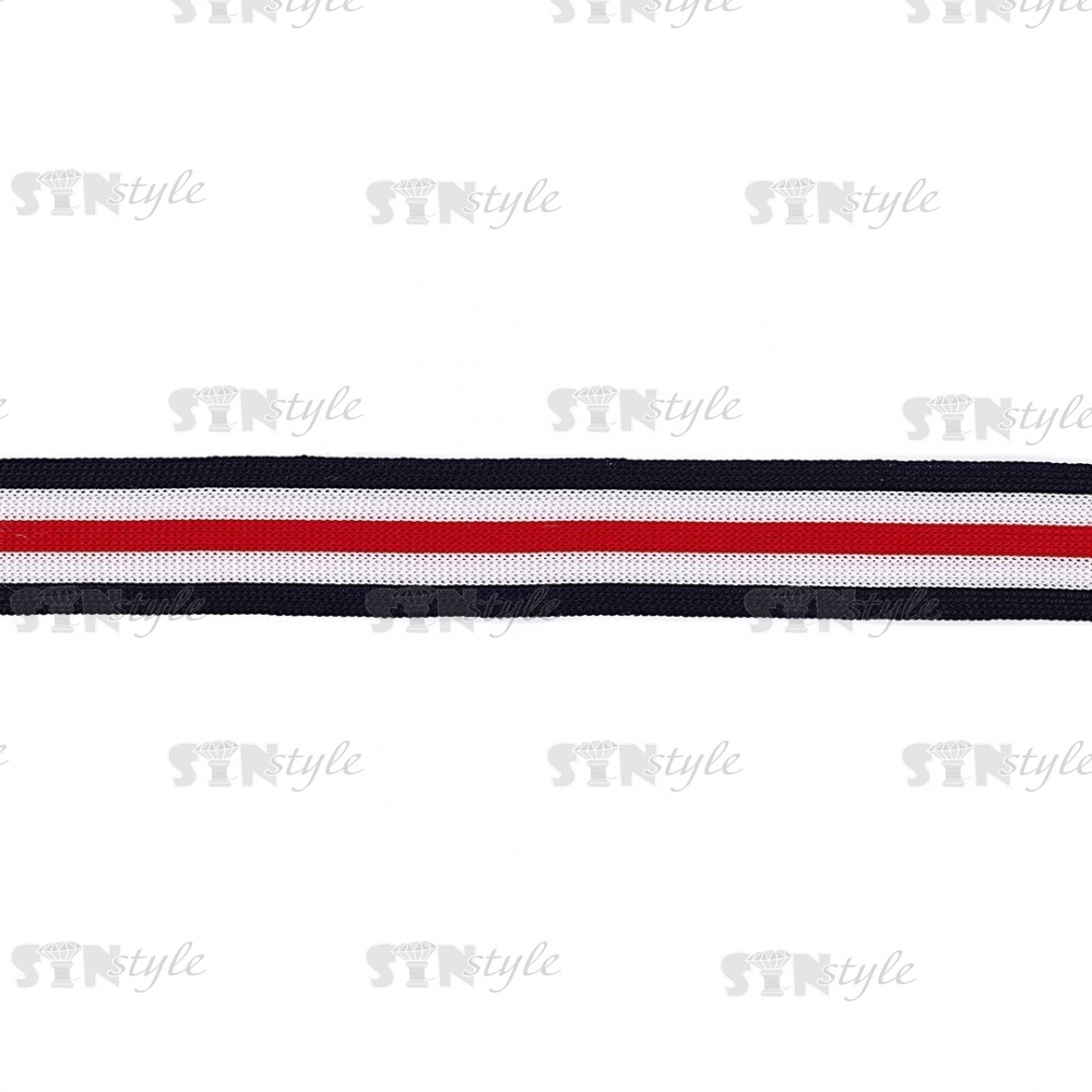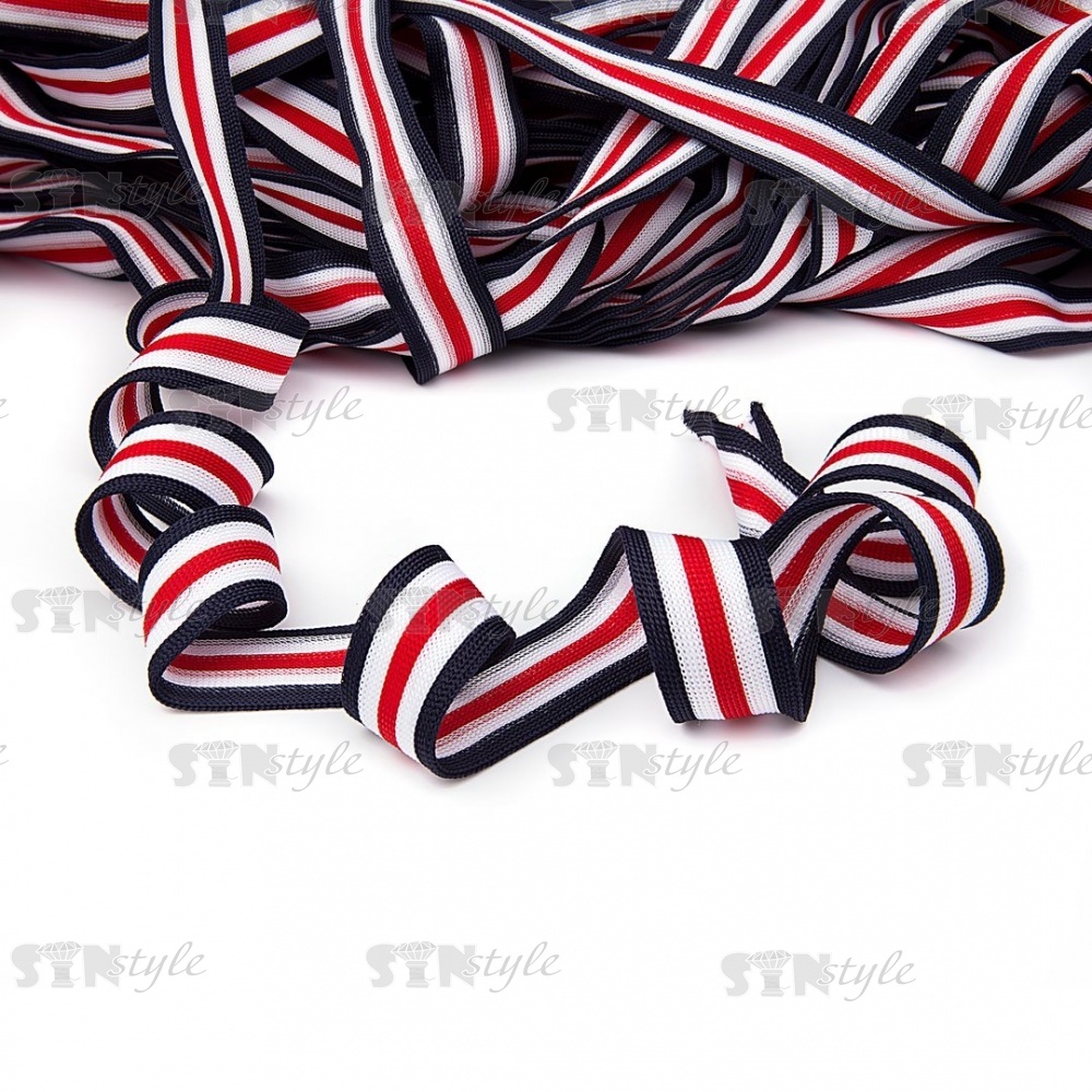 Тесьма трикотажная (лампасная), ширина 25 мм, цвет темно-синий/белый/красный, намотка 70 метров