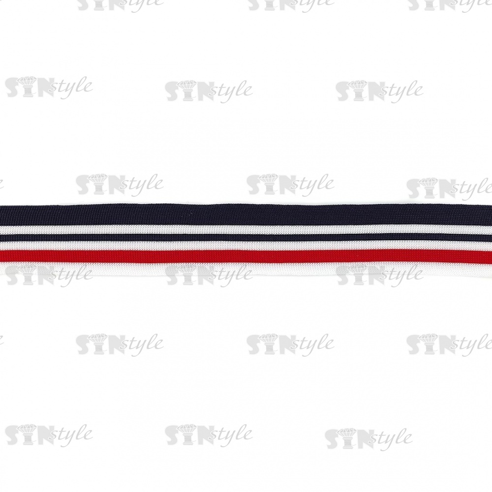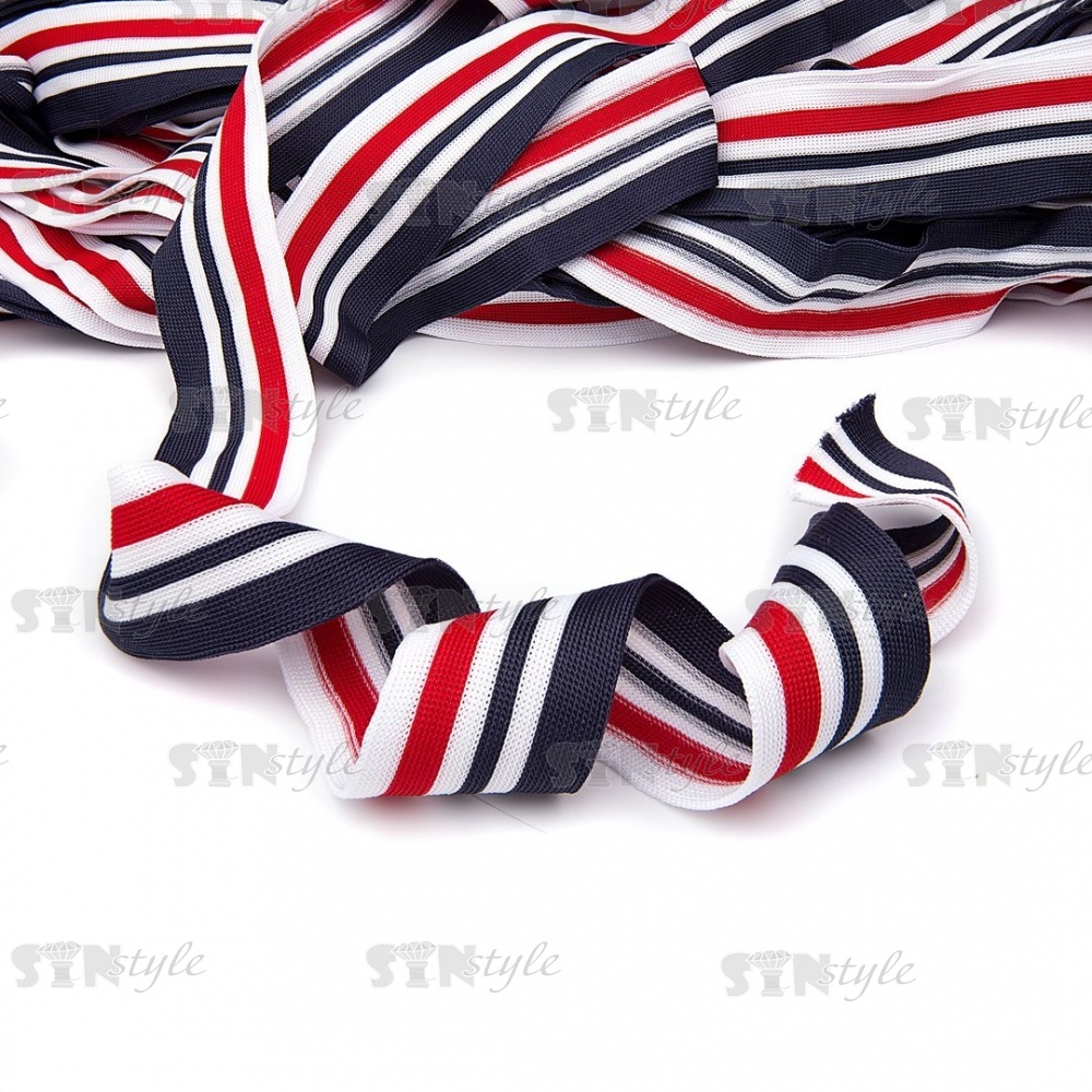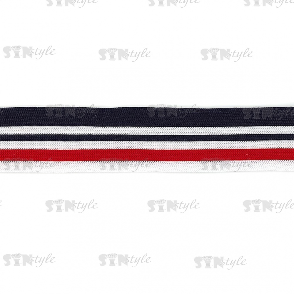 Тесьма трикотажная (лампасная), ширина 40 мм, цвет темно-синий/белый/красный, намотка 70 метров