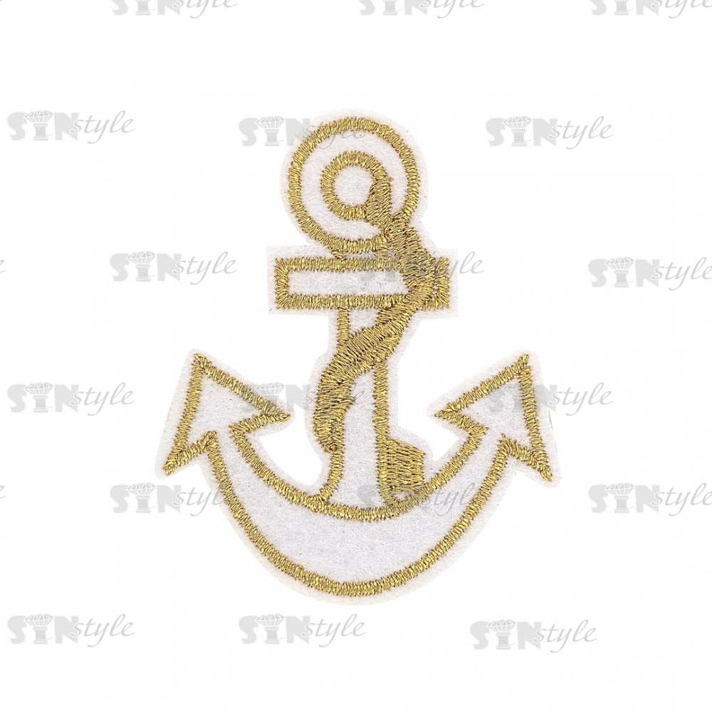 Термоаппликация "Якорь", размер 55х65 мм, цвет белый+золото