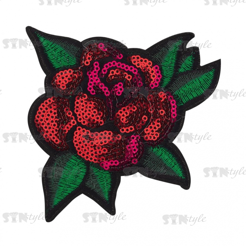 Термоаппликация "Роза" с пайетками, размер 102х115 мм