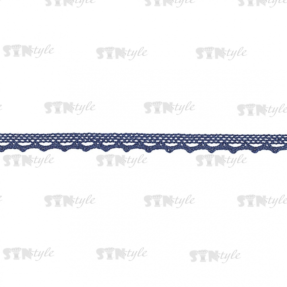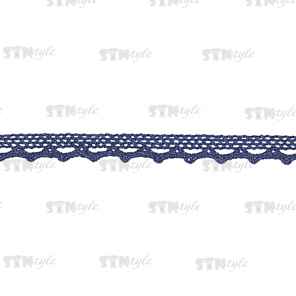 Кружево хлопковое вязаное, ширина 12 мм, цвет темно-синий, намотка 15 ярдов