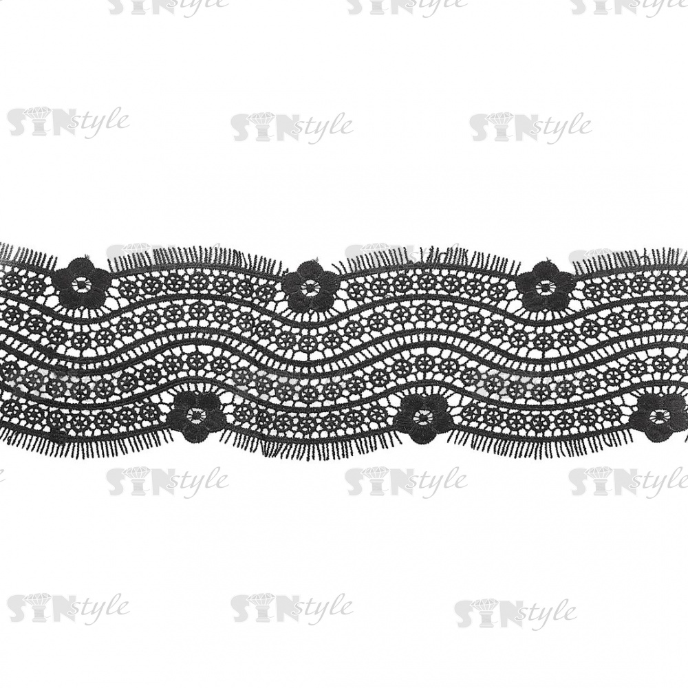 Кружево вязаное ажурное, ширина 90 мм, цвет черный, намотка 15 ярдов